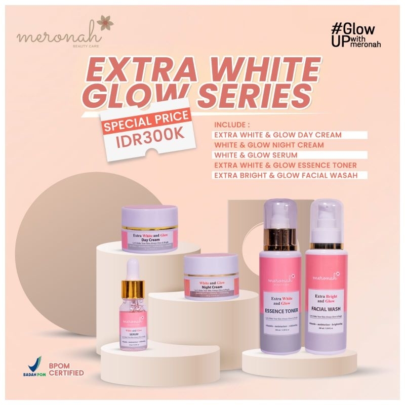 MERONAH GLOWING CREAM PAKET LENGKAP / EXTRA WHITE GLOW SERIES