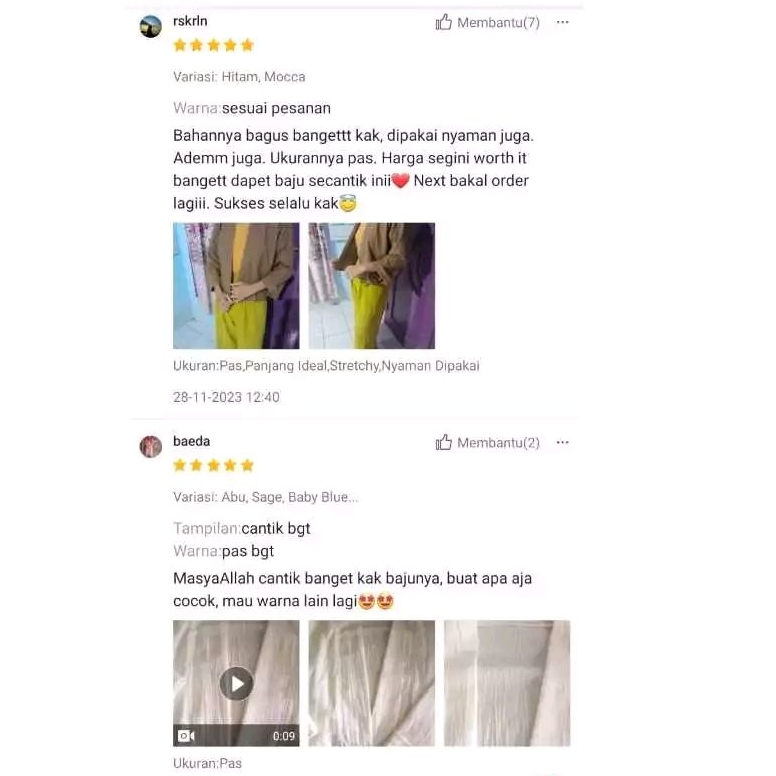 MOCCA, PUTIH BW, HITAM, IVORY, FUCHIA, LEMON, DUSTY, BABY BLUE, SAGE, ABU TUA