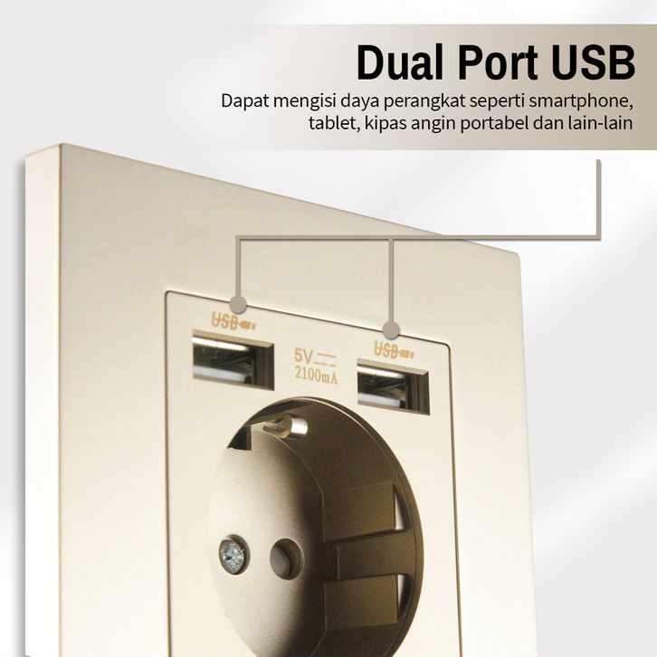 Taffware Stop Kontak EU Colokan Listrik Dinding dan 2 Port USB 2100 mA - WS222 - Golden