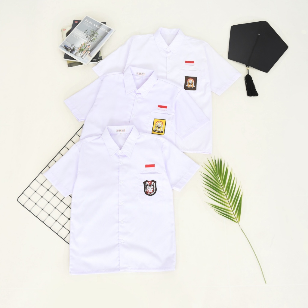 Seragam Sekolah SD MADRASAH SMP SMA SMK Kemeja Putih Baju Atasan Lengan Pendek Bet Bordir