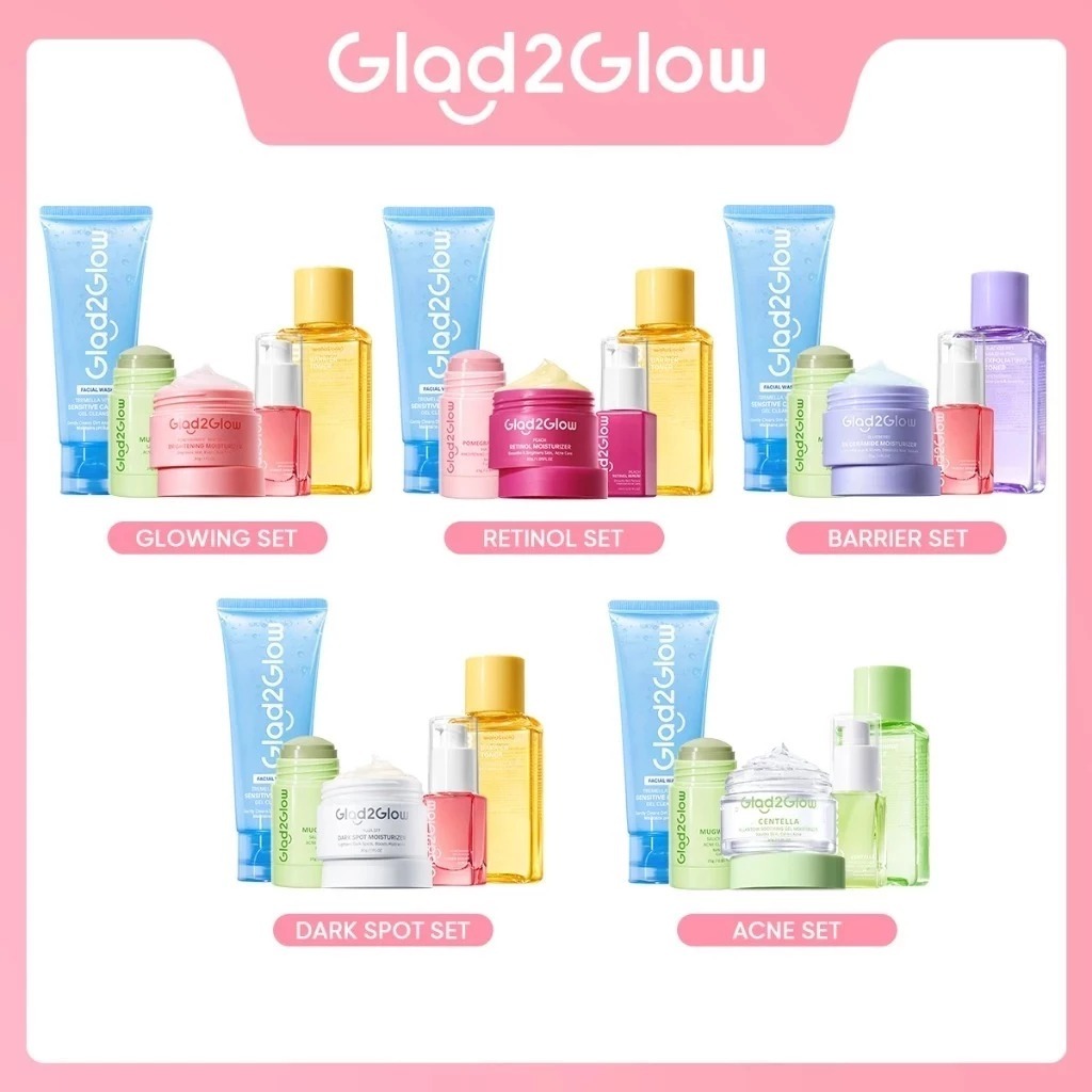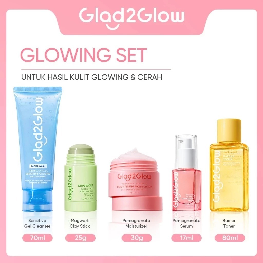 SPECIAL BUNDLE 5 in1 Glad2Glow 5pcs Paket Skincare Moisturizer Serum Clay Mask Face Wash Toner-ACNE KIT GLOWING KIT