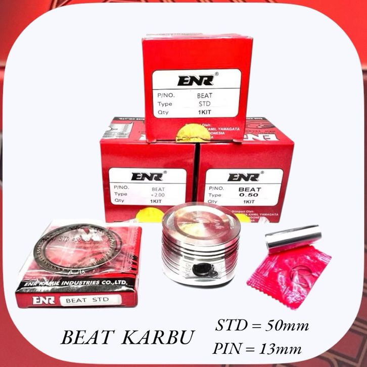 Piston Kit Set Honda BEAT SCOOPY SPACY ( Karbu ) Os : STD - 0.25 - 0.50 - 0.75 - 1.00 - 150 - 2.00 Original ENR