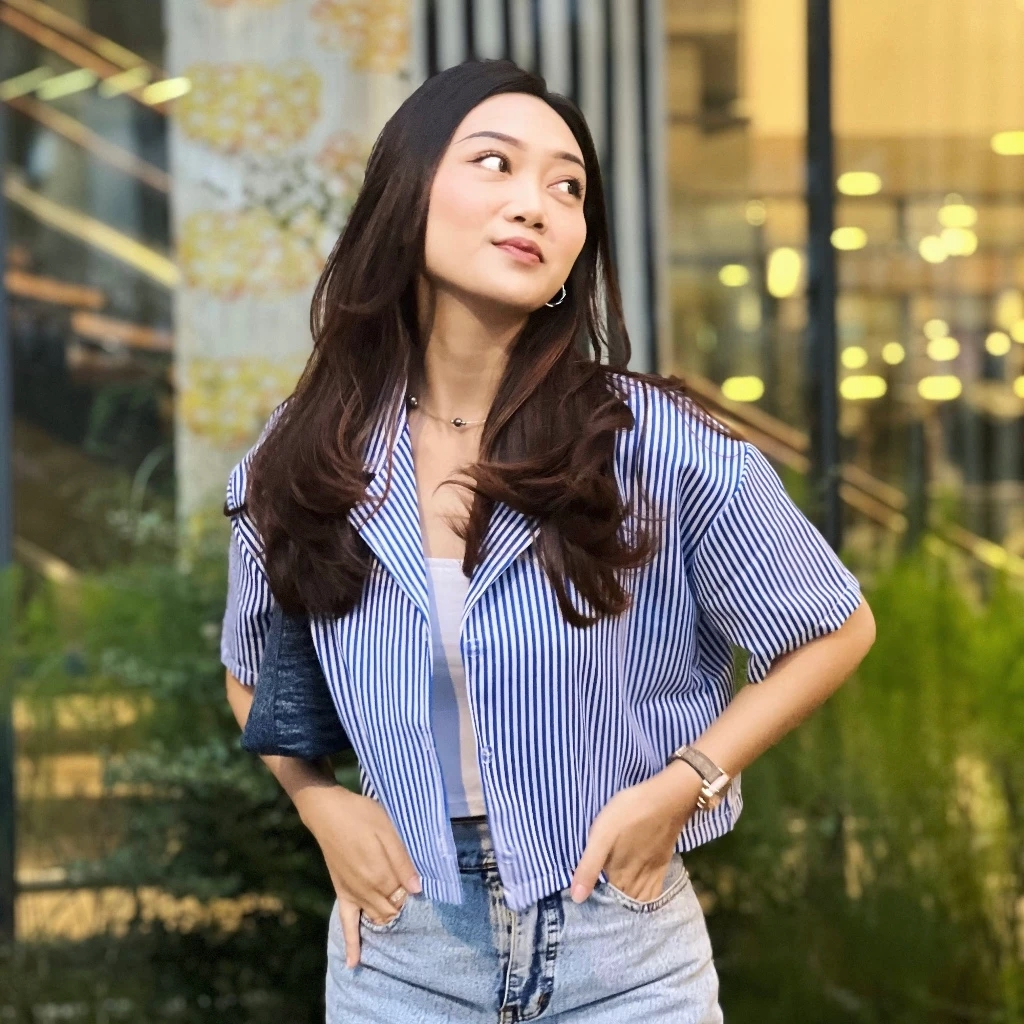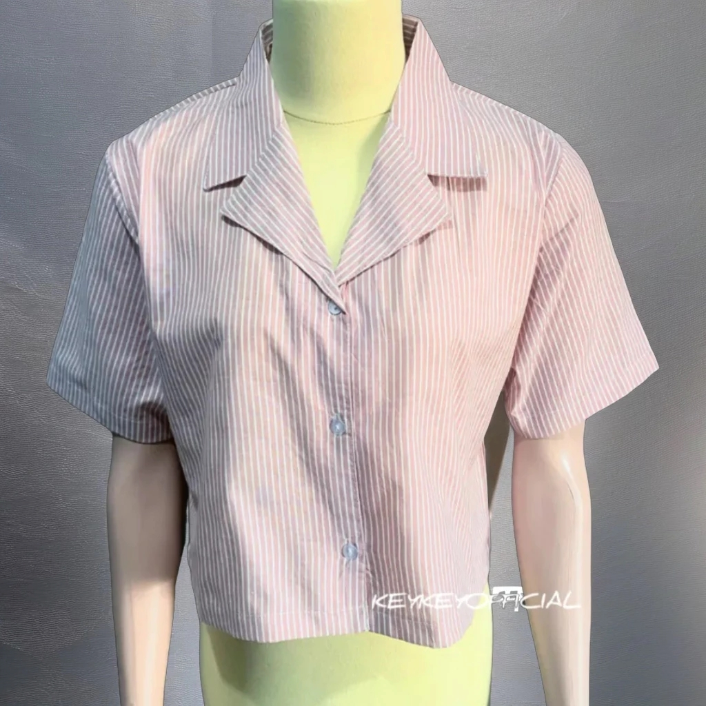 Kemeja Crop Top Wanita Kekinian Lengan Pendek Korean Style Atasan Salur Terbaru