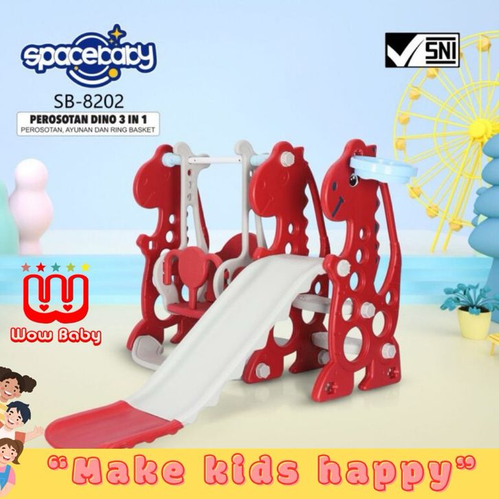 SPACEBABY SB8202 MAINAN PEROSOTAN ANAK DAN AYUNAN SLIDE 3IN1 MODEL DINO Free Bola