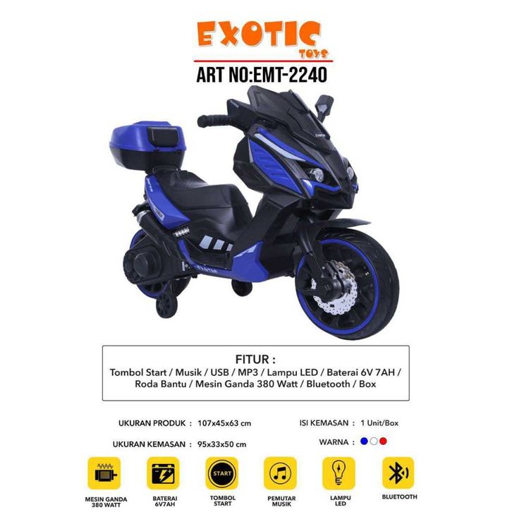 MAINAN ANAK MOTOR AKI EXOTIC EMT - 2240 PLUS BOX / MOTOR MAINAN ANAK / MAINAN KENDARAAN ANAK
