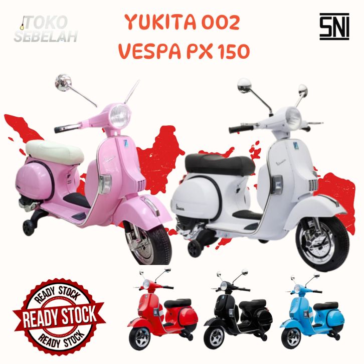 Mainan Aki Motor Anak Yukita 002 Vespa PX150 License - Hitam