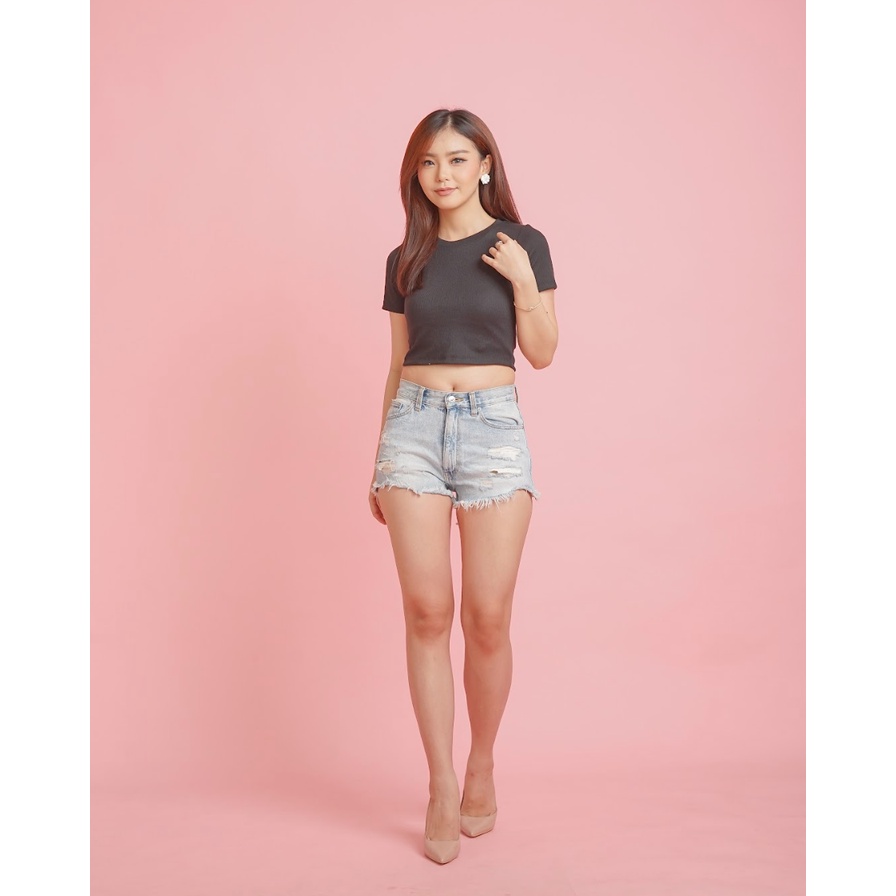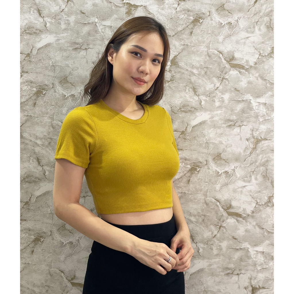 MODAVIE - CLAY Crop Top Korea Knit Crop Tee Korean Style Kaos Wanita