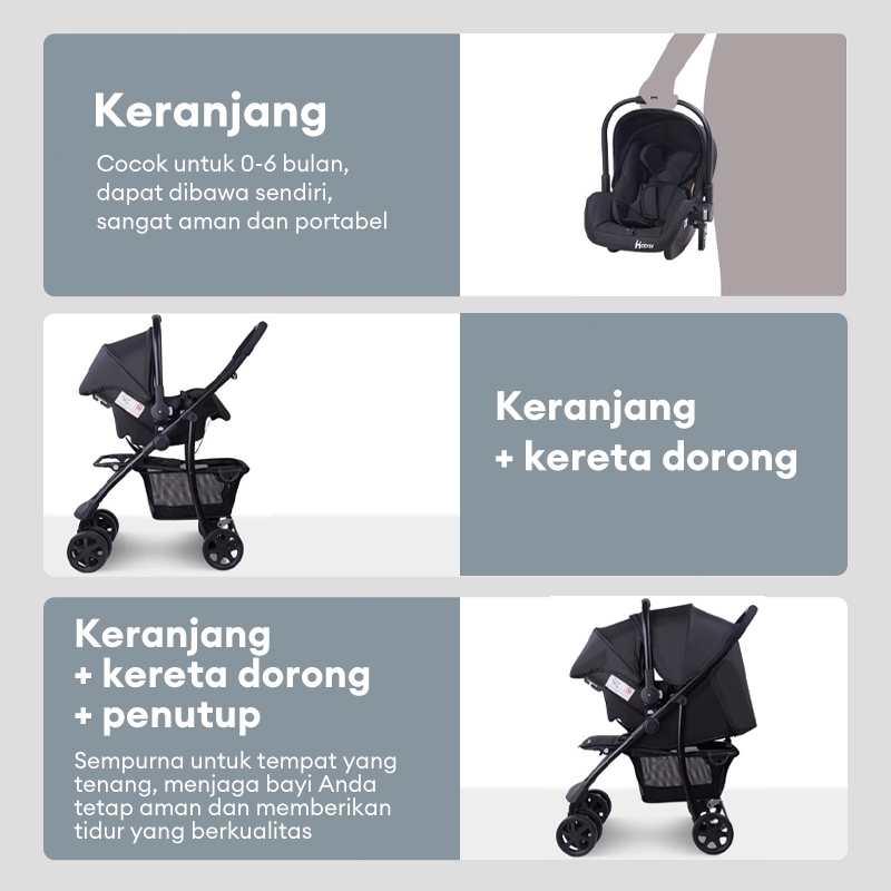 Stroller + Car Seat Kursi Mobil Anak 4in1 Bayi Stroller Bayi AutoFold