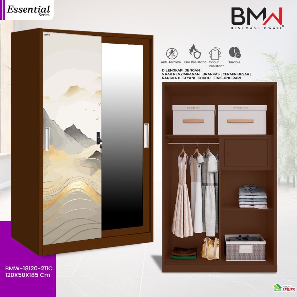 LEMARI PAKAIAN BESI SLIDING BMW 2 PINTU MINIMALIS MODERN GANTUNG LEMARI BAJU SLIDING BESI 2 PINTU KACA CICILAN TANPA DP