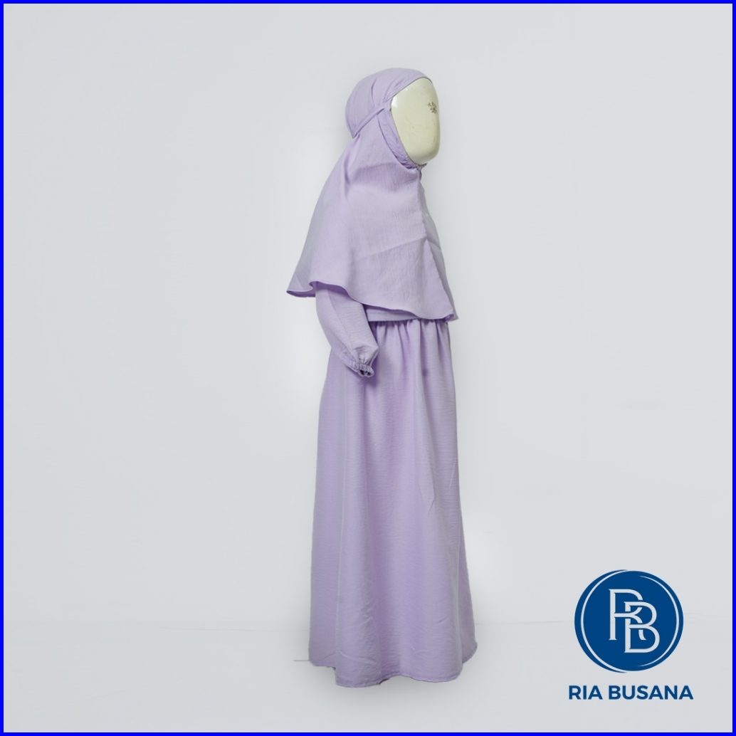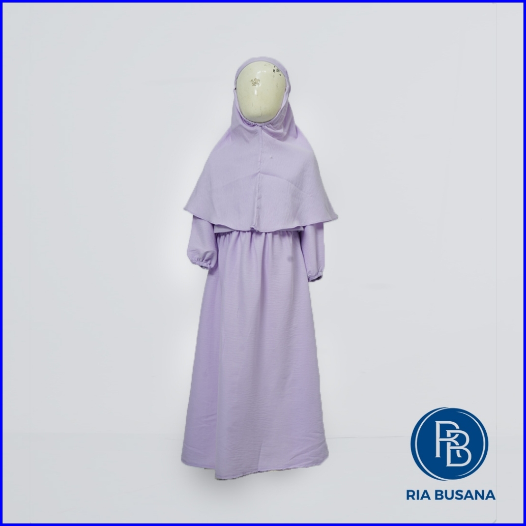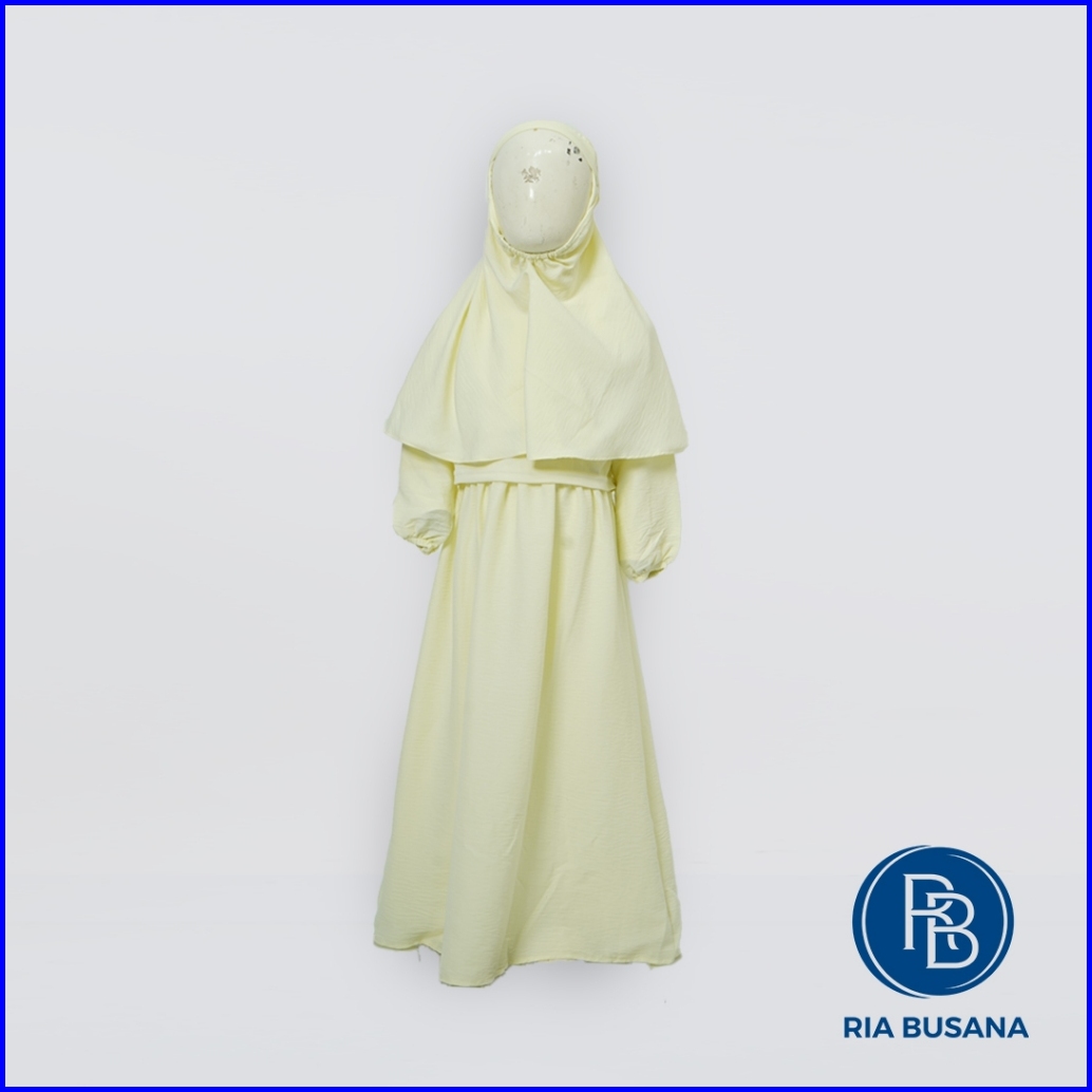 Ria Busana - Bom Kids - Gamis Anak Wanita Pita Santorini Silk Kombinasi Rib Free Kerudung Art.126504-kombrib