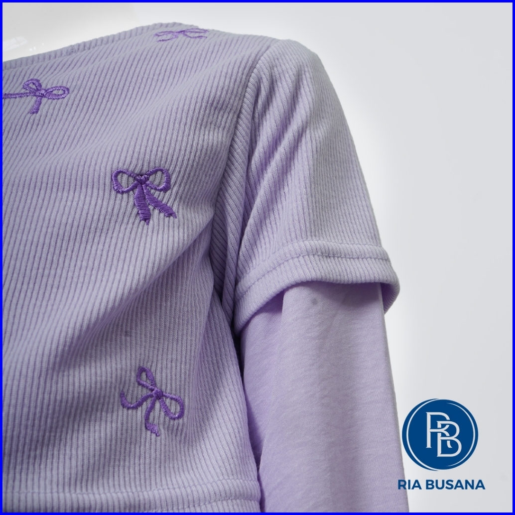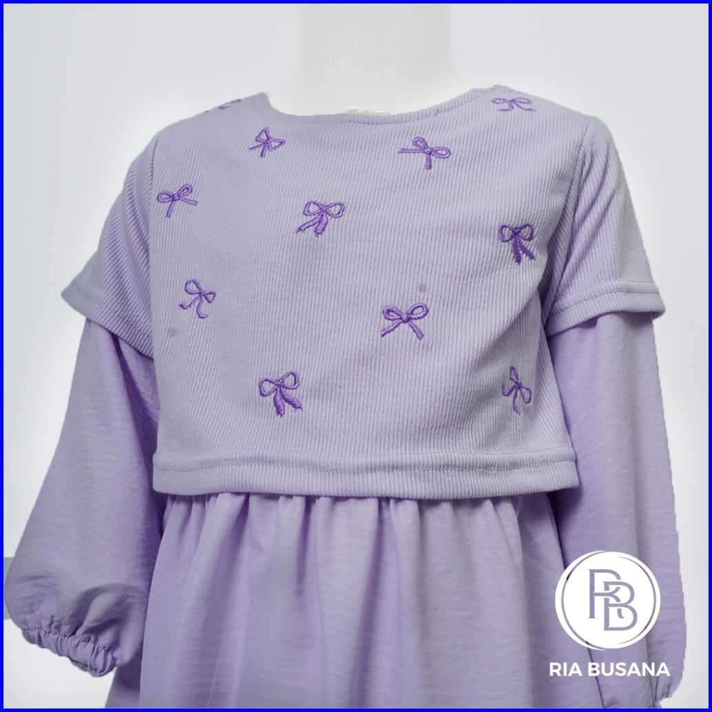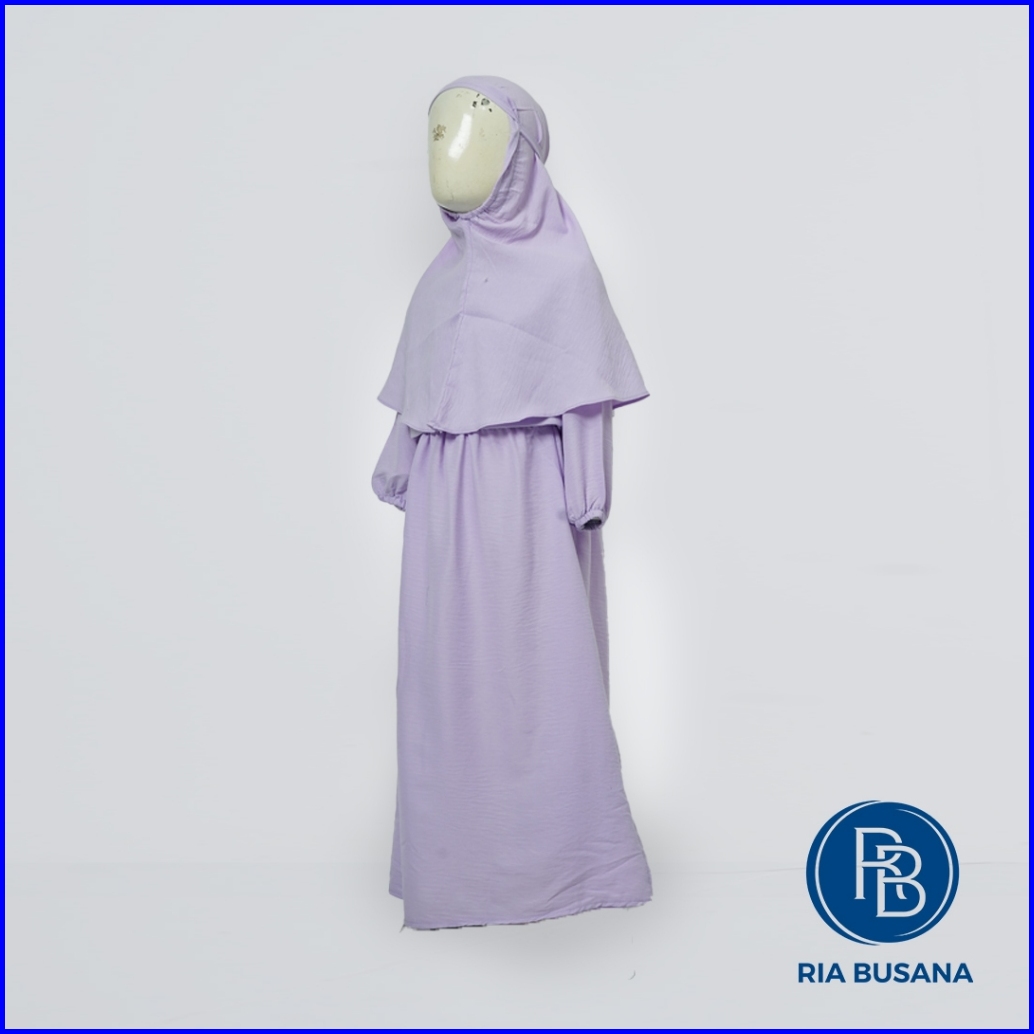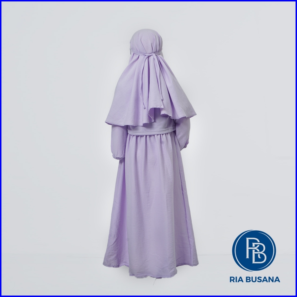 Ria Busana - Bom Kids - Gamis Anak Wanita Pita Santorini Silk Kombinasi Rib Free Kerudung Art.126504-kombrib