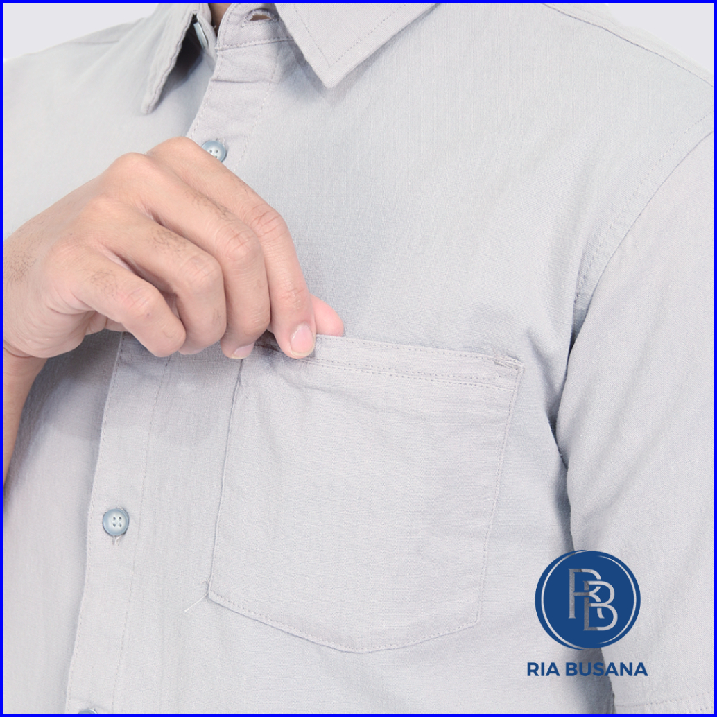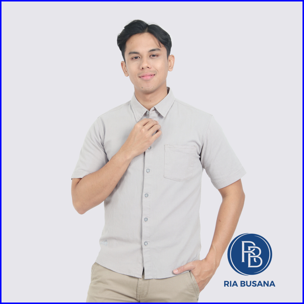 Ria Busana - Kendy - Kemeja Kasual Polos Lengan Pendek Dewasa Pria Katun Strech Art. Cdkk04238gn