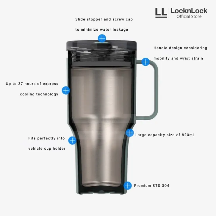 TUMBLER LOCKNLOCK METRO KING TUMBLER 820ML - LHC4326 ORIGINAL BOTOL MINUM TAHAN PANAS DAN DINGIN BEST SELLER