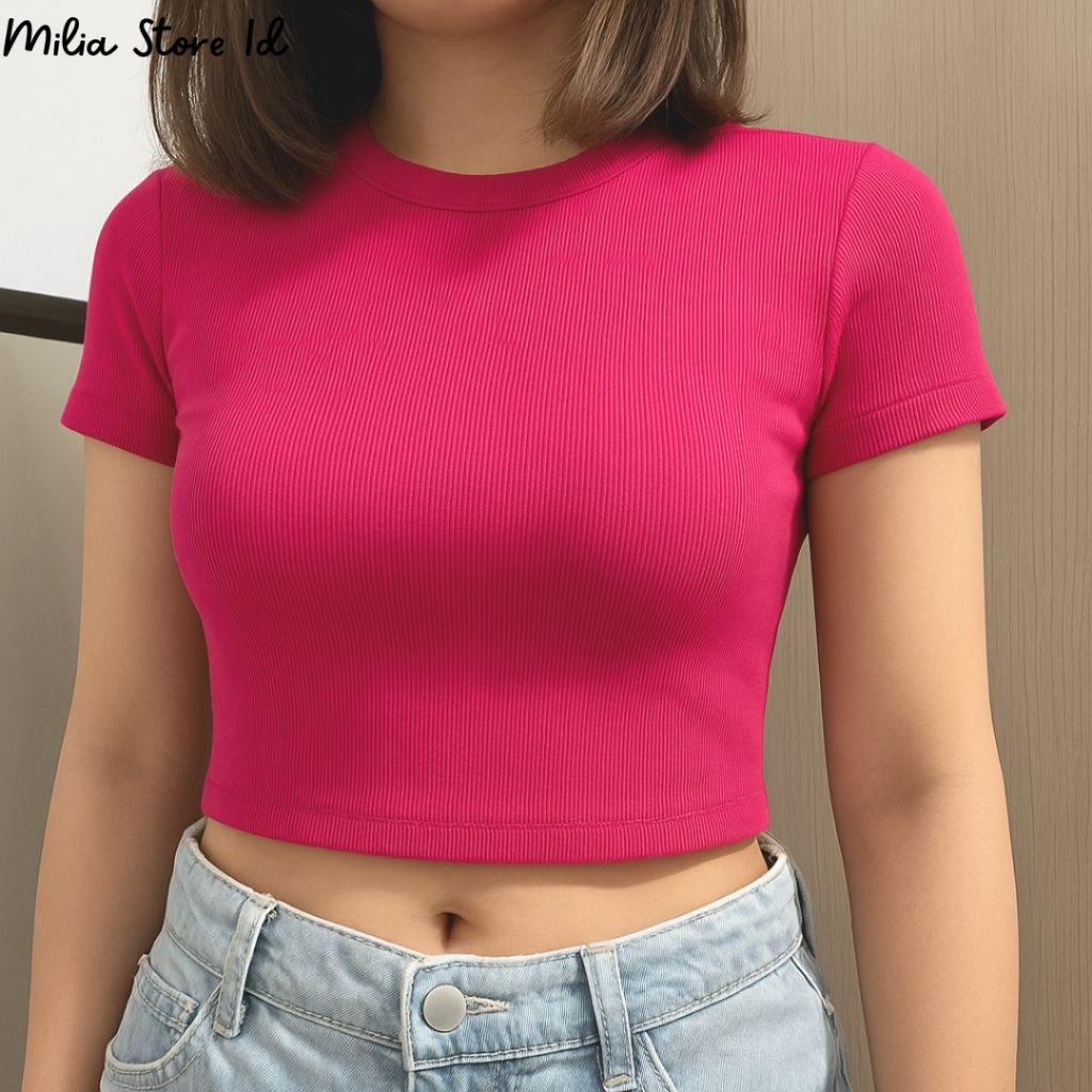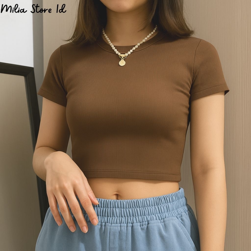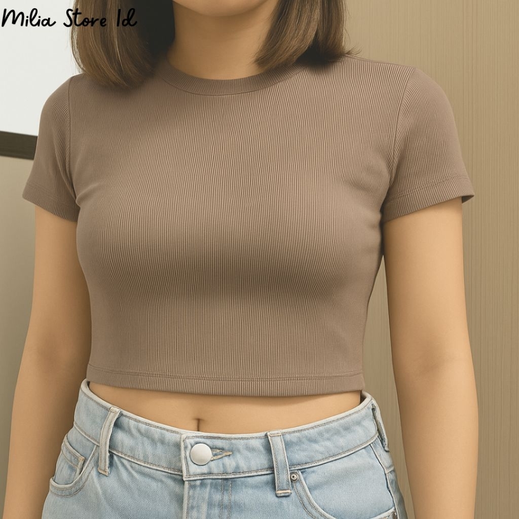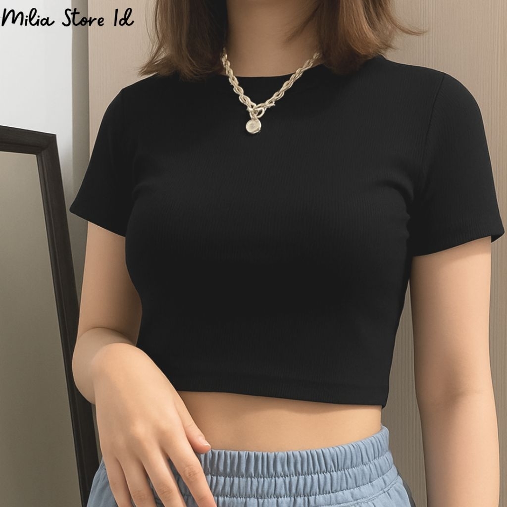 Korean Top - Kaos Crop Top Wanita Knit Korea Style Stretch