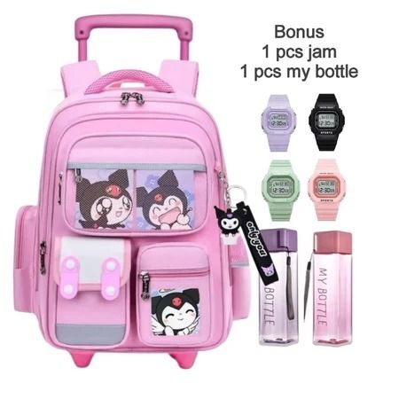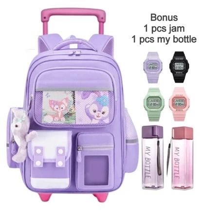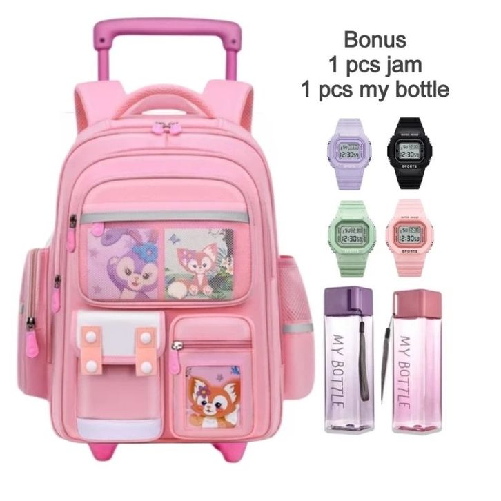 Gratis Ongkir / Tas Roda / Tas Sekolah Anak/ Ransel Anak Tas Troli Anak Perempuan Motif FOX Free Jam Tangan Dan Botol