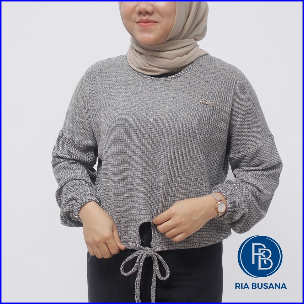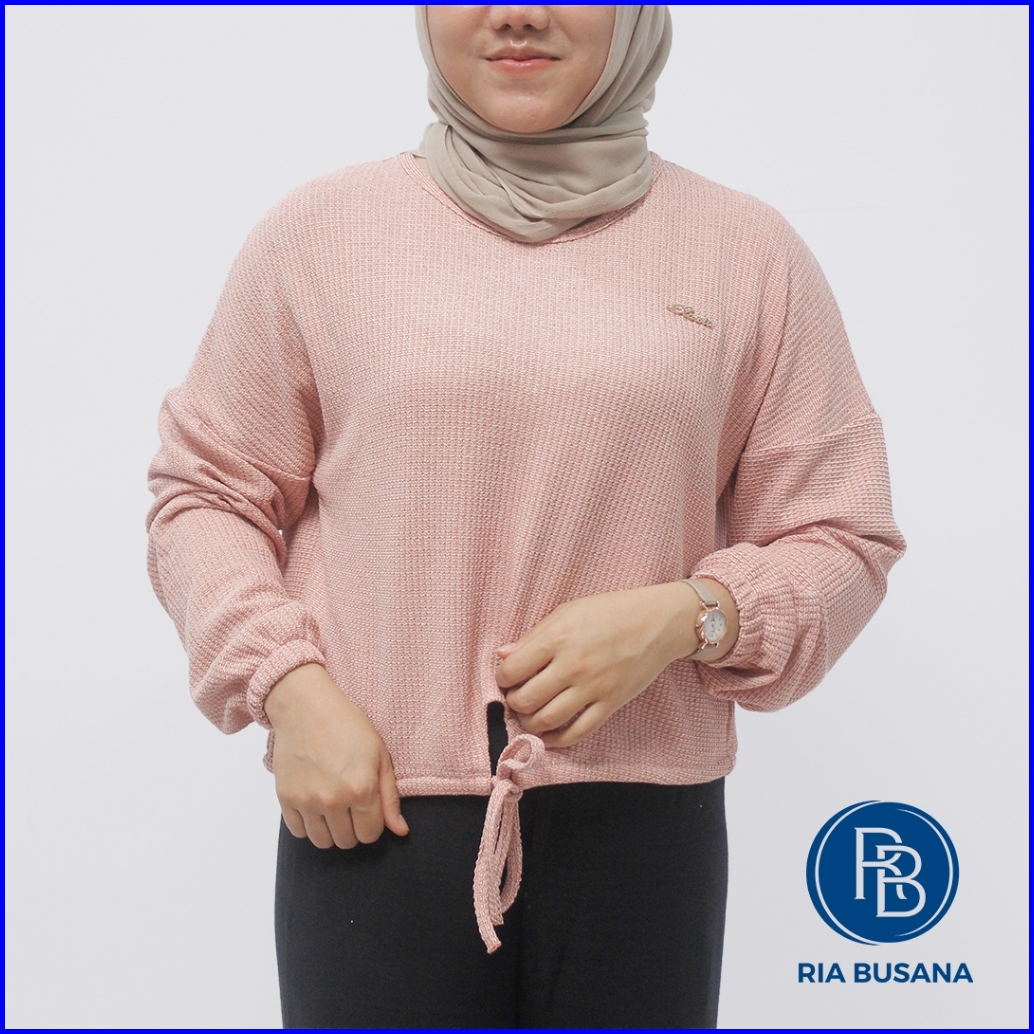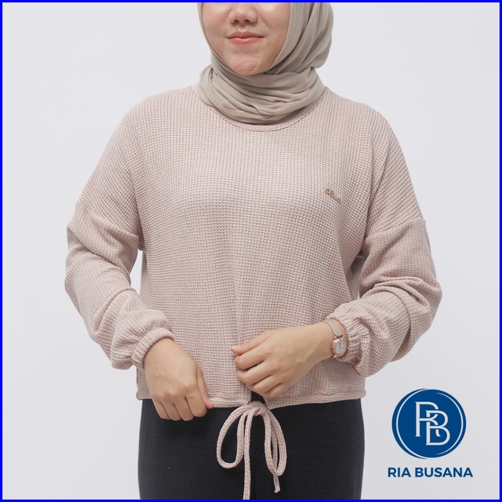Ria Busana - Zayna - Blouse Kaos Wanita Crop Polos Waffle Ikat Bawah Art. 2121000778
