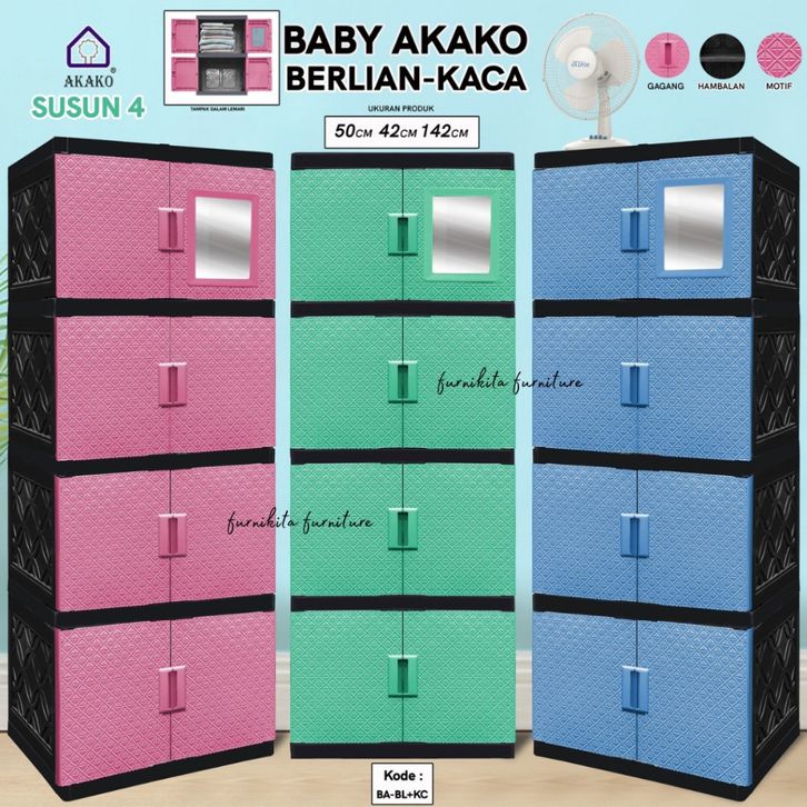 LEMARI PLASTIK AKAKO BERLIAN SUSUN 4 KACA