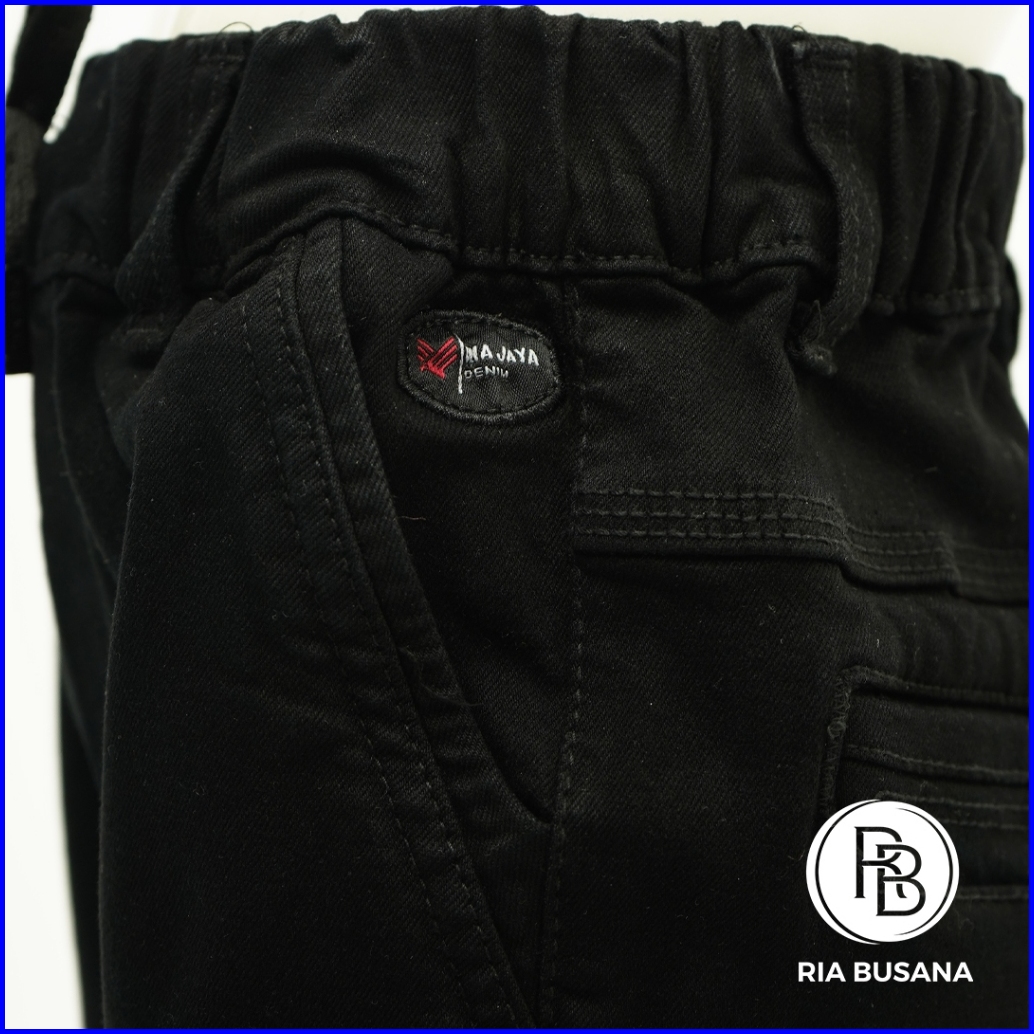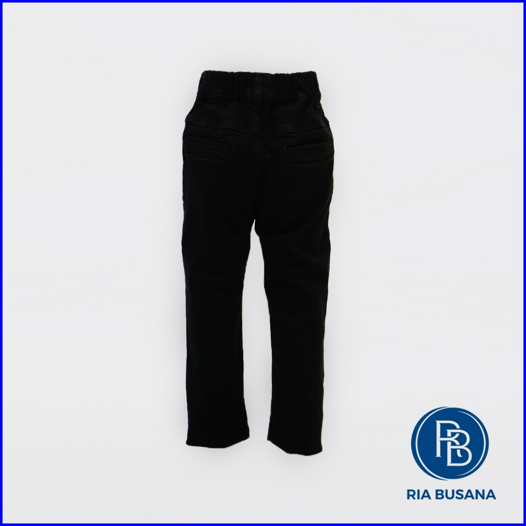 Ria Busana - Ria Jaya - Celana Jeans Panjang Kasual Semi Pensil Letro Anak Pria Hitam Polos Art. Rpej03303ln