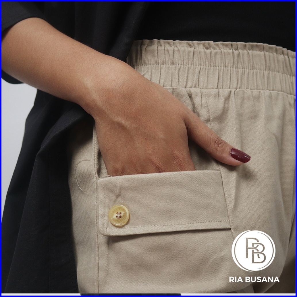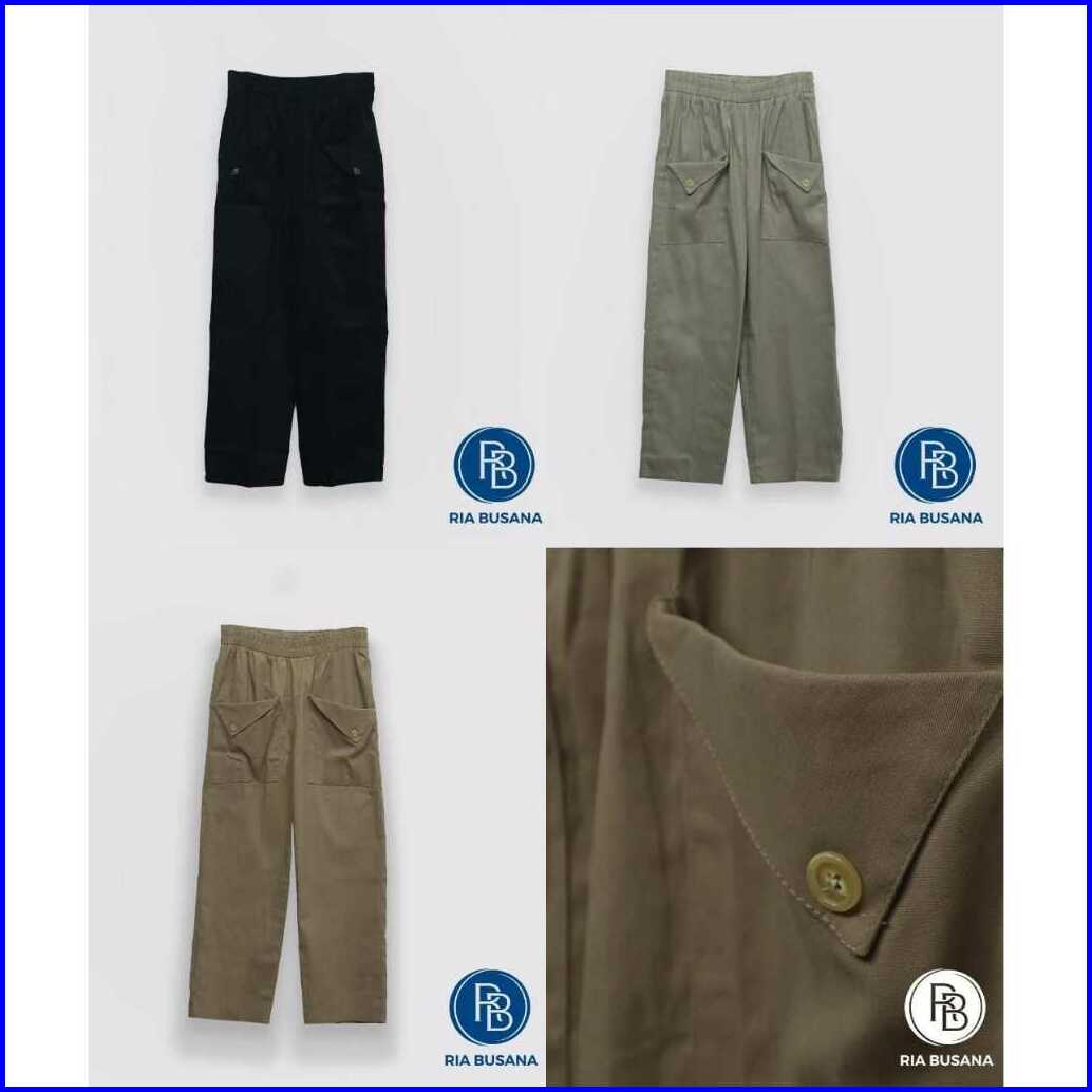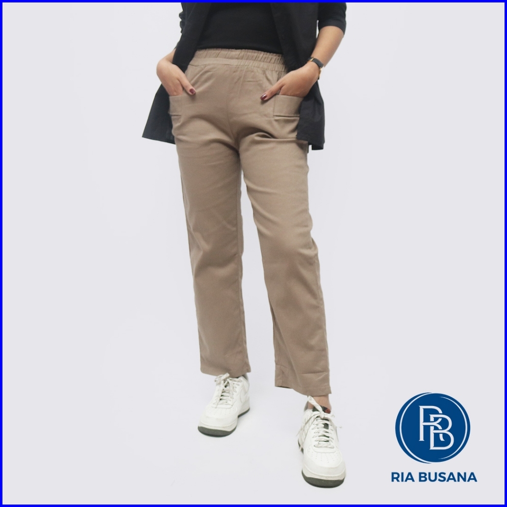 Ria Busana - Becca - Celana Panjang High Waist Wanita Casual Kantong Depan Twill