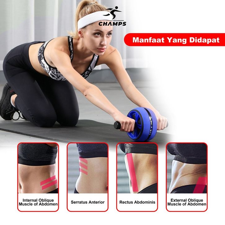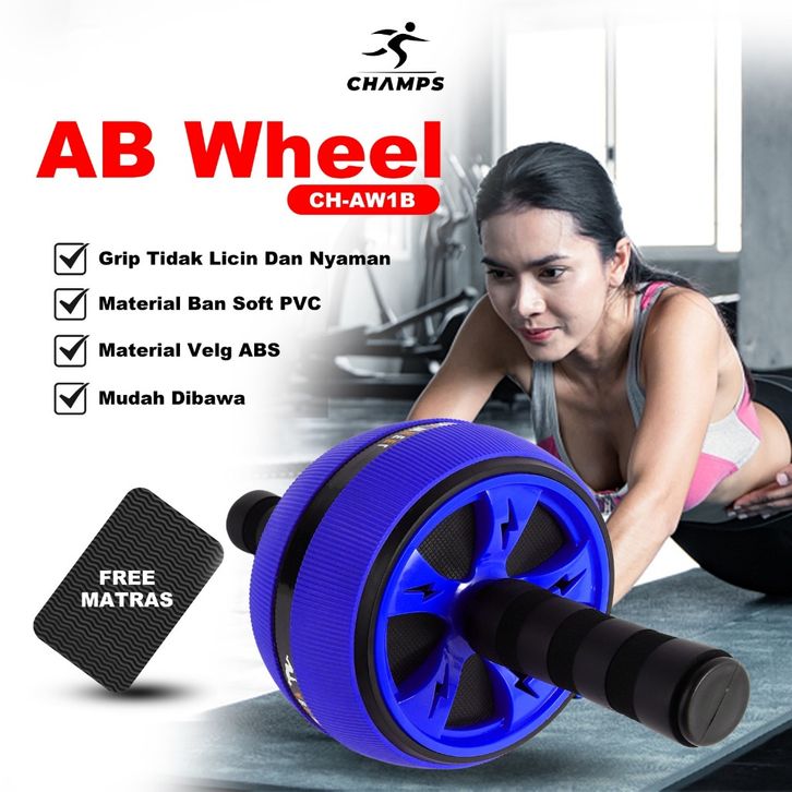 CHAMPS AB Wheel Roda Exerciser Roll Gym Fitness Abdominal Roller Olahraga Gym Fitness + FREE Matras