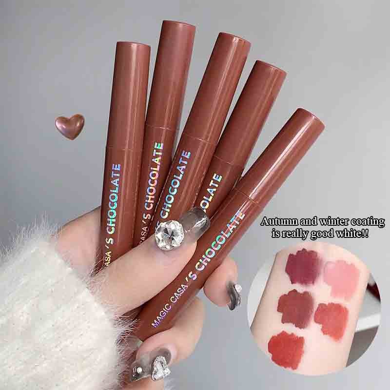 []Magic Casa 5Pcs Paket Lipstik Matte Cokelat Lipstik Matte Anti Air Tahan Lama /Set Lipstick Velvet Matte Beruang