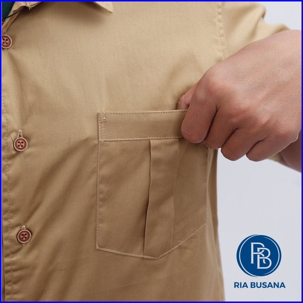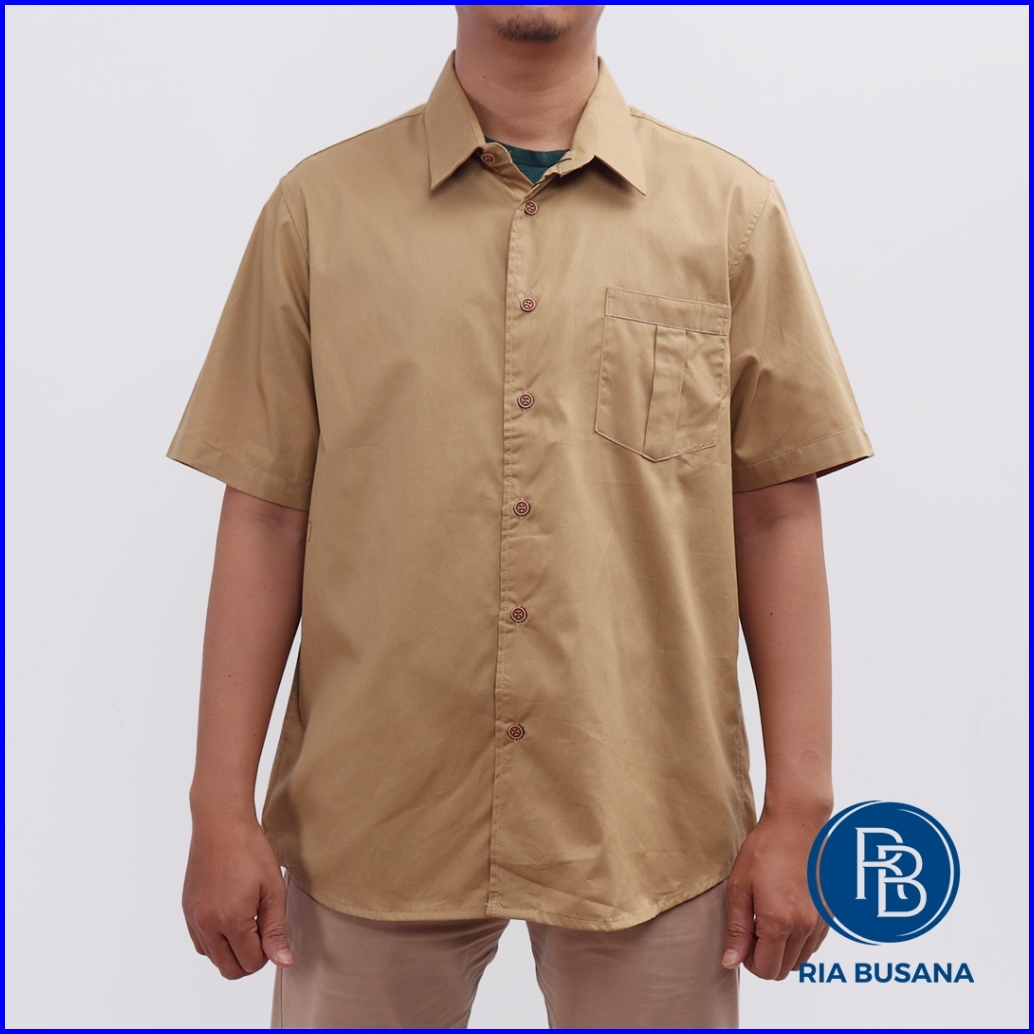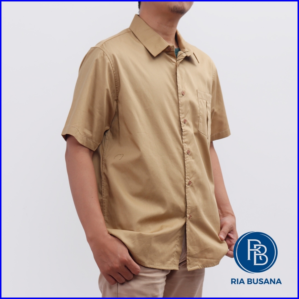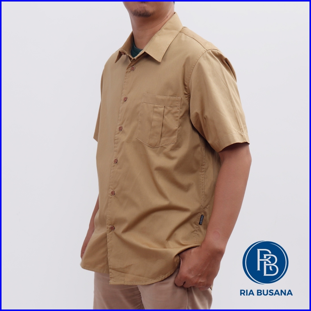 Ria Busana - Vansteri - Kemeja Polos Pria Art. Polos Khaki