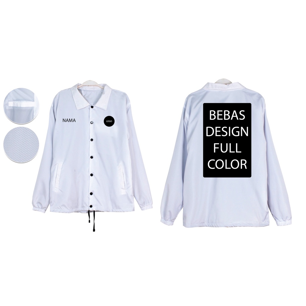 Jaket Coach Custom Bebas Design Parasut Anti Air Sablon DTF Gambar Logo Tulisan Nama Foto Group Kantor Partai Mirip Jaket Erig0 Hadiah Lucu Kado Unik