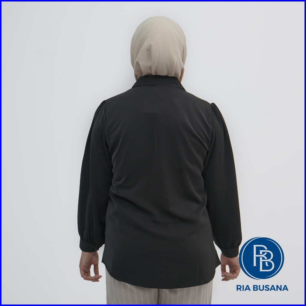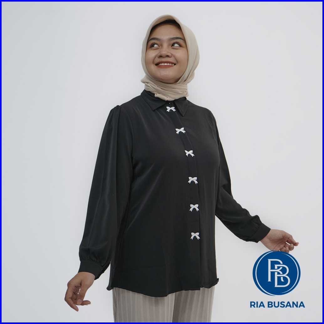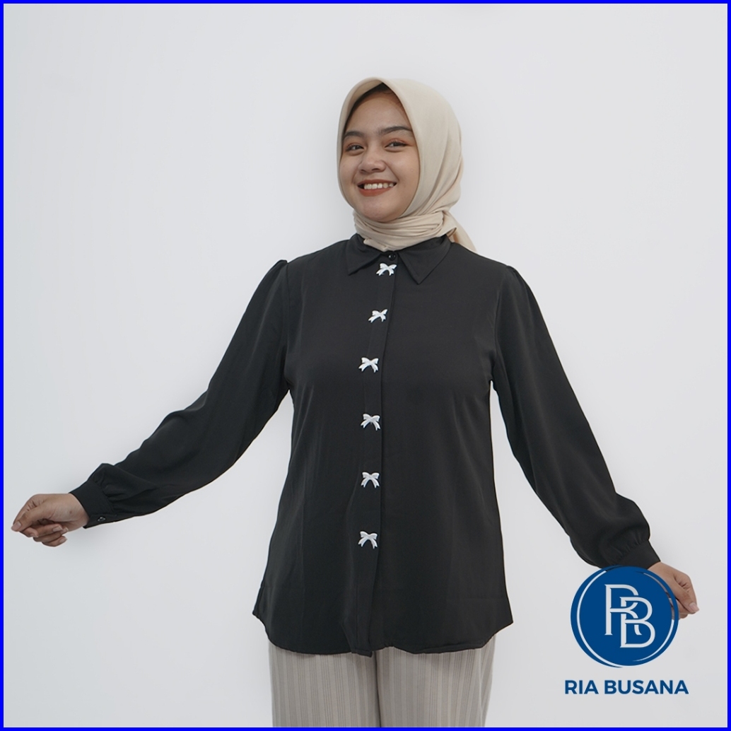 Ria Busana - Agape 88 - Kemeja Wanita Lengan Panjang Polos Hitam-putih Katun Art. 2442-pita