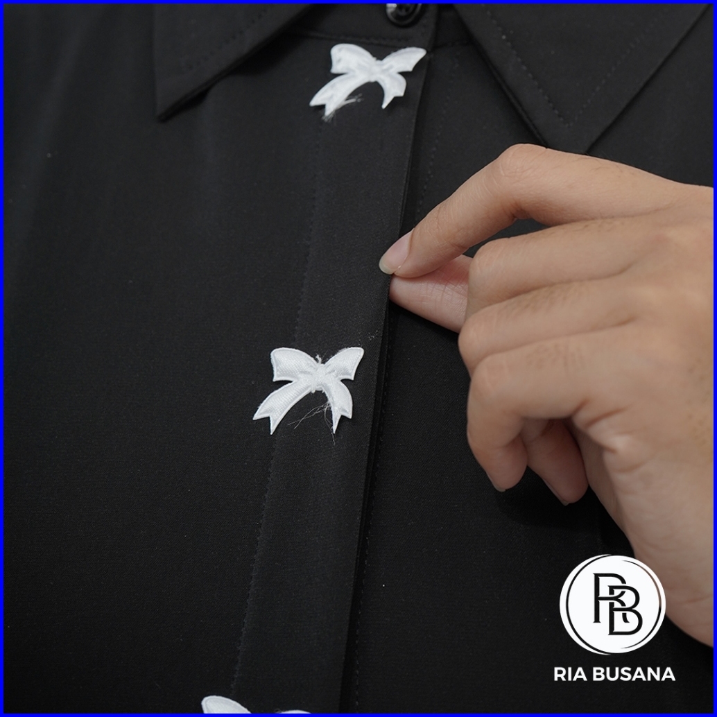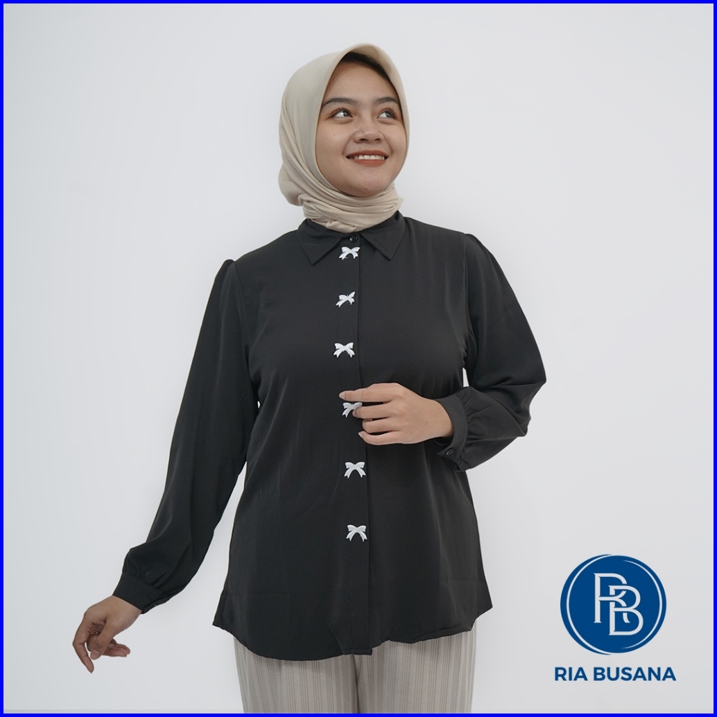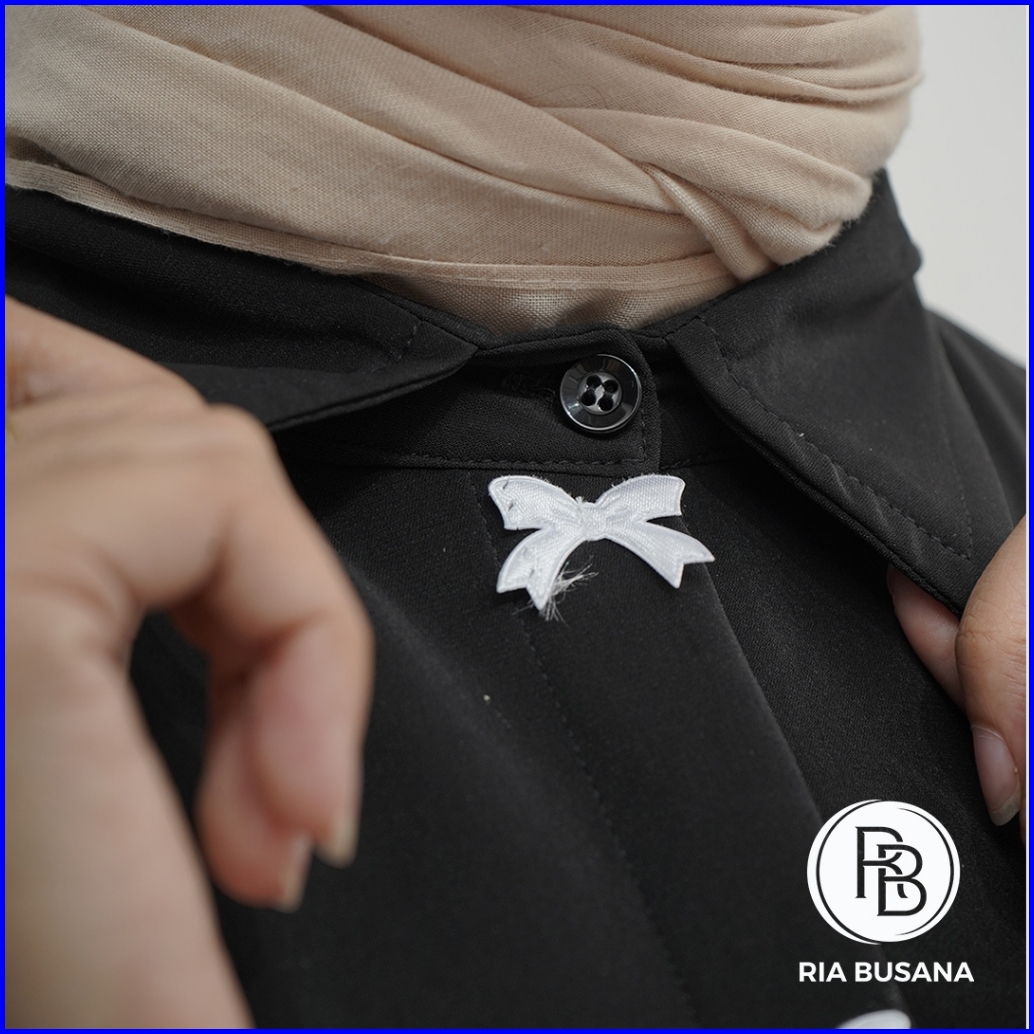 Ria Busana - Agape 88 - Kemeja Wanita Lengan Panjang Polos Hitam-putih Katun Art. 2442-pita