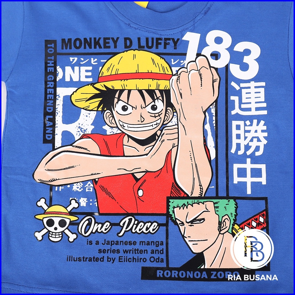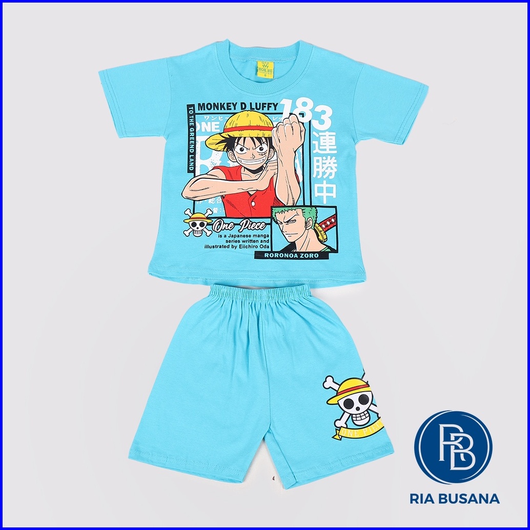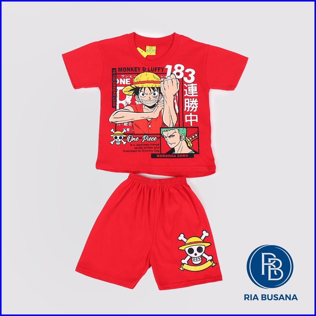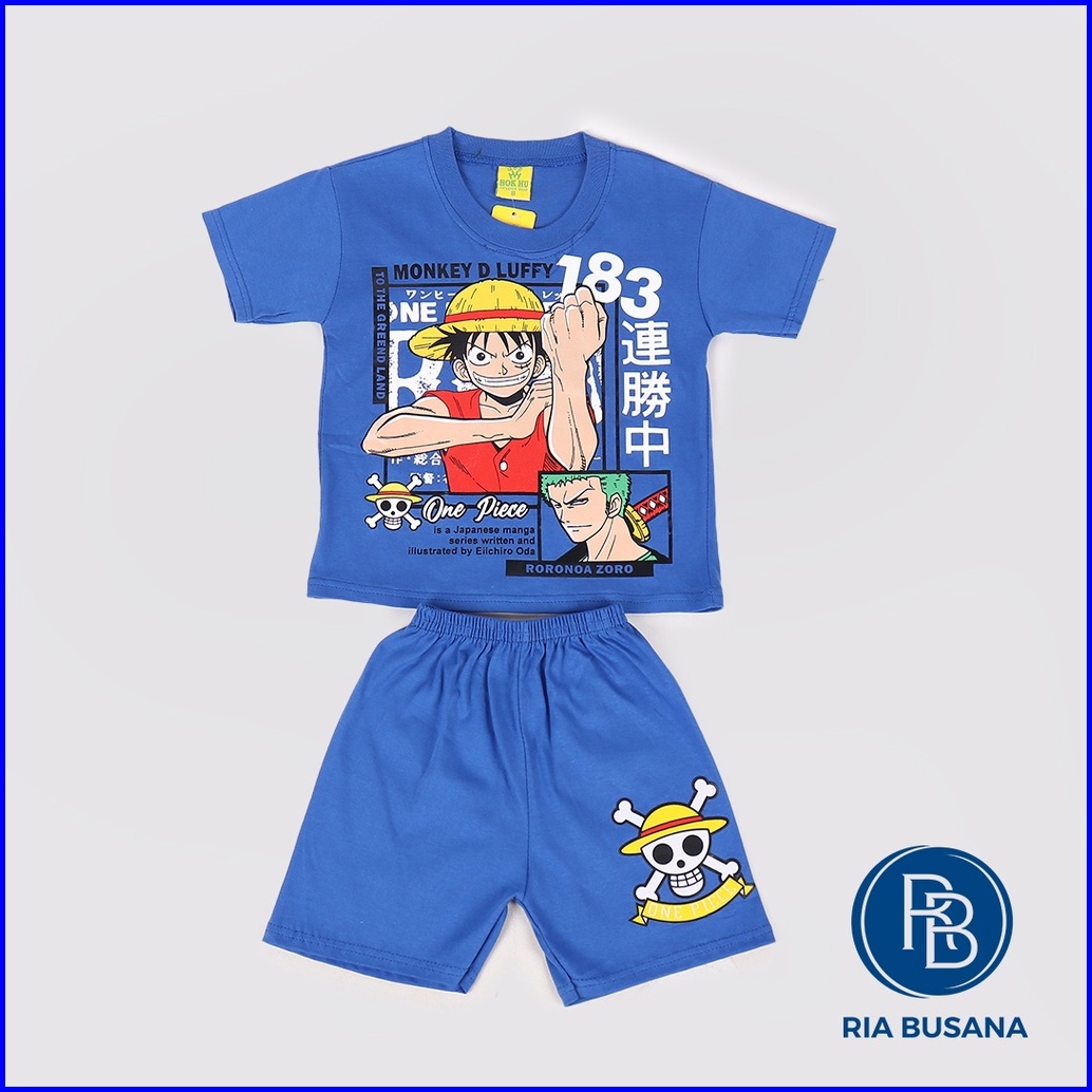 Ria Busana - Hok Hu - Setelan Anak Pria Motif One Piece Luffy Sablon Katun Art.luffy