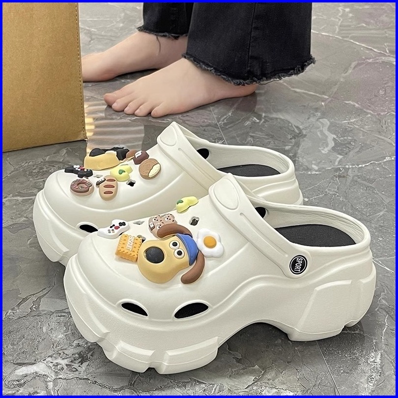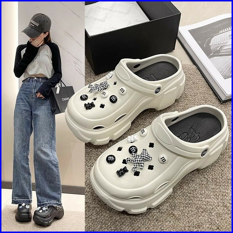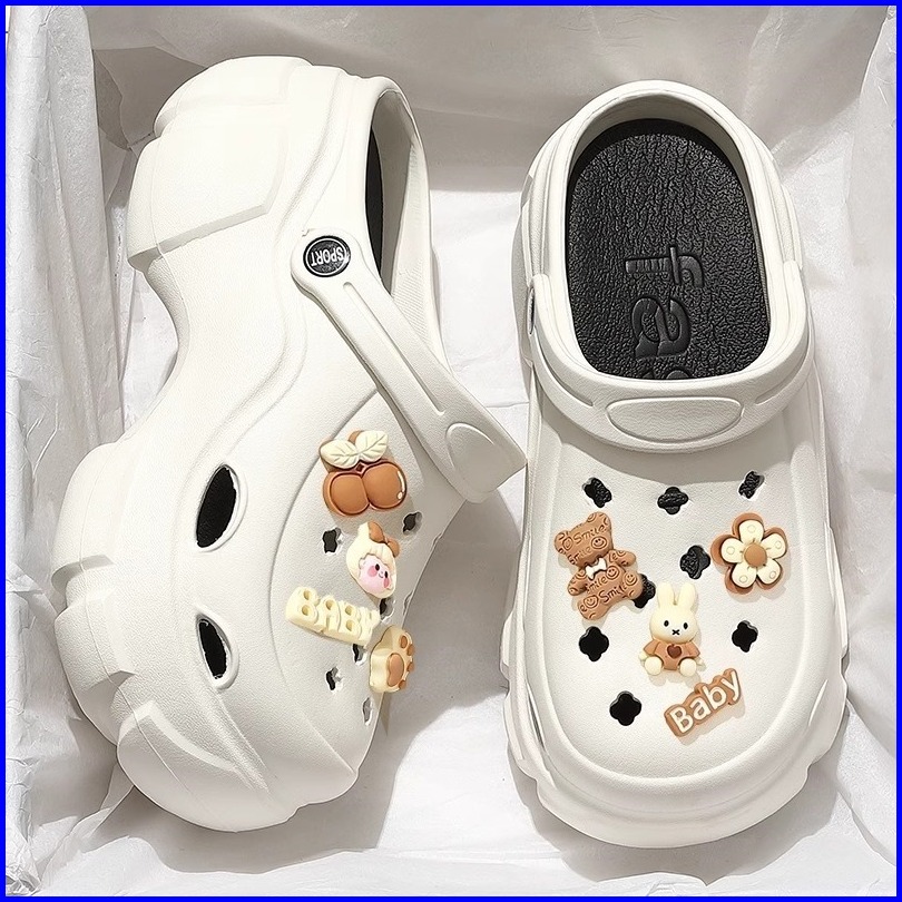 Sandal Wanita Elegan 2025 Baru Baotou Sandal Pantai Anti Selip Eva Sol Tebal 5cm Sandal Jeli Karet