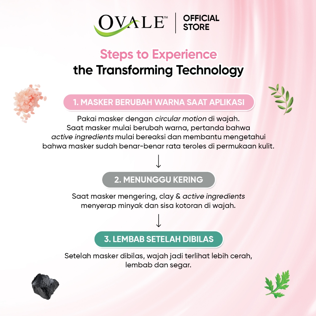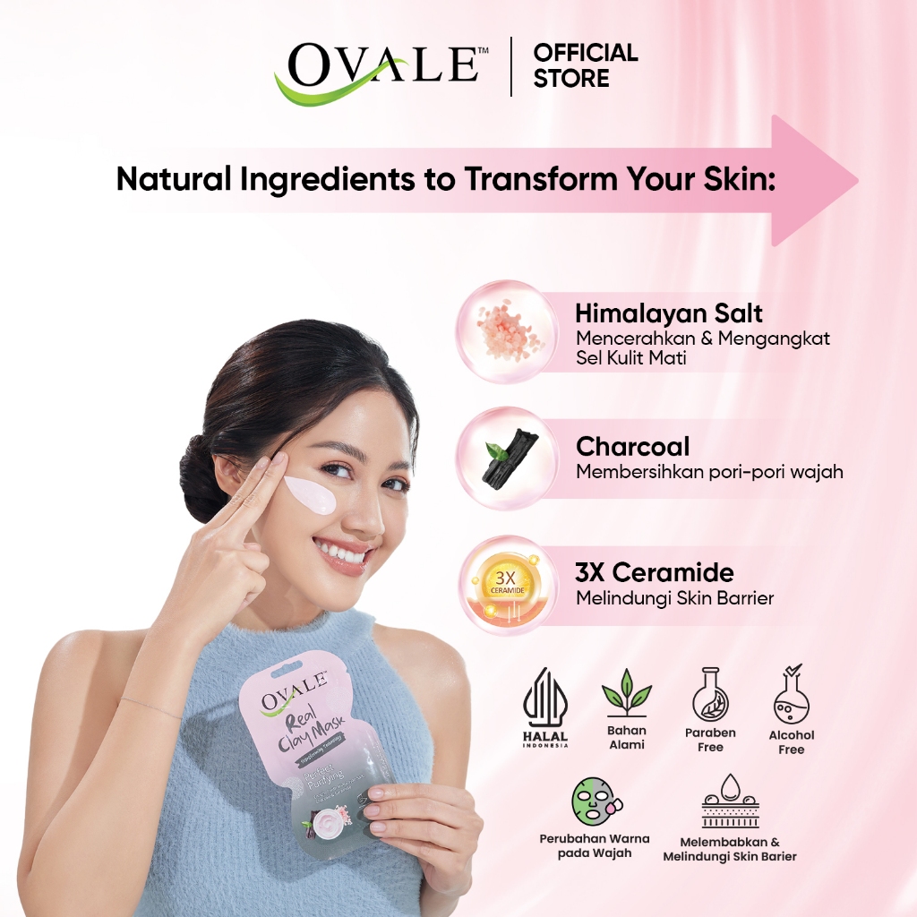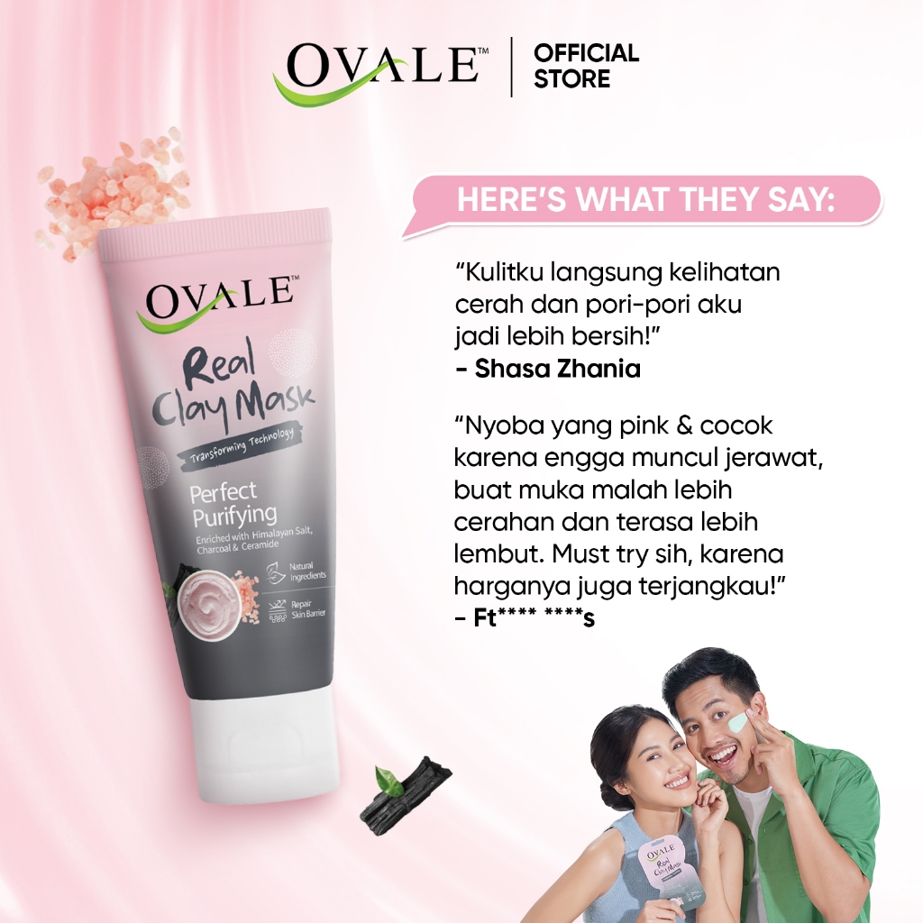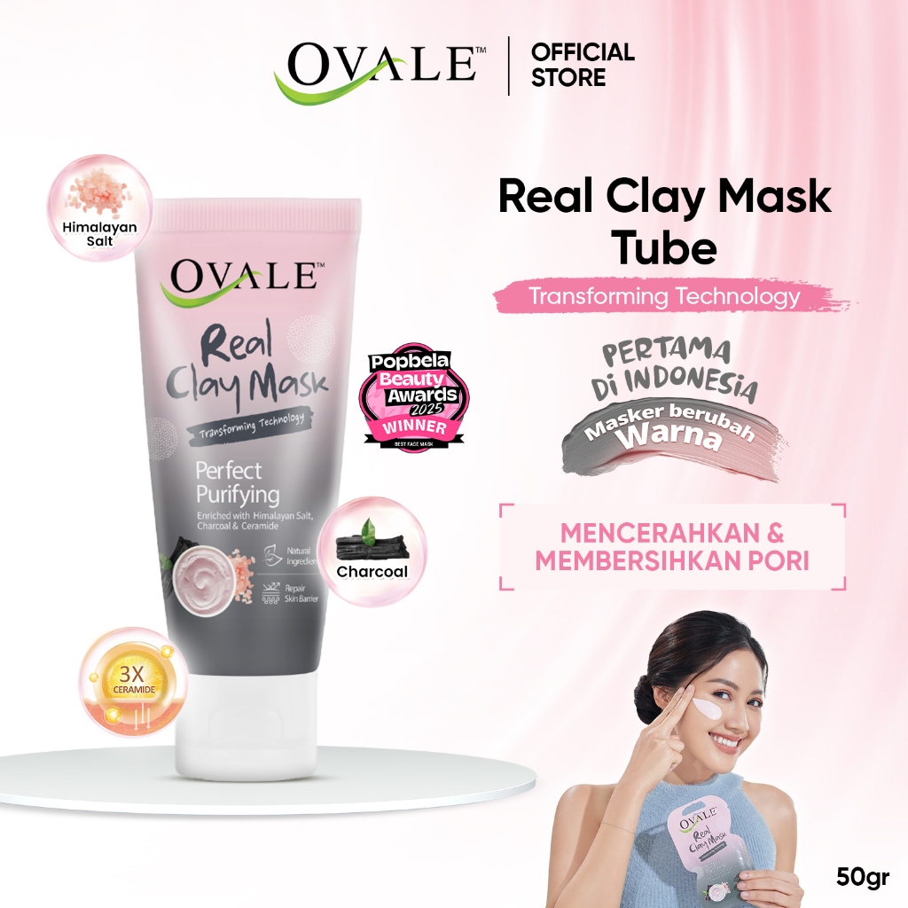 Ovale Real Clay Mask Perfect Purifying 50gr | Masker Wajah Berubah Warna Himalayan Salt Mencerahkan Kusam Eksfoliasi Kom