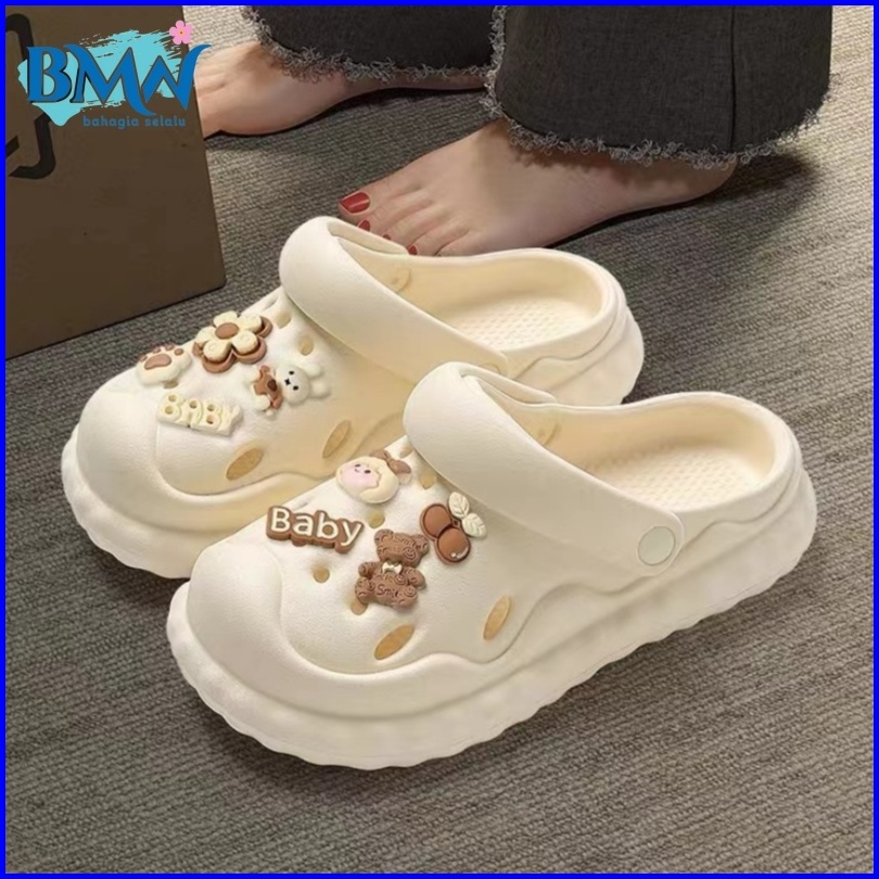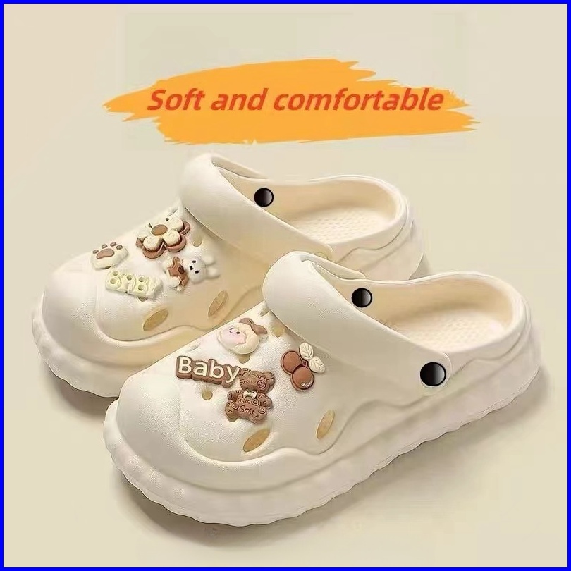 Sandal Wanita Sandal Bolong Wedges Import Import Aksesori Dekorasi Kartun 2024 Korea