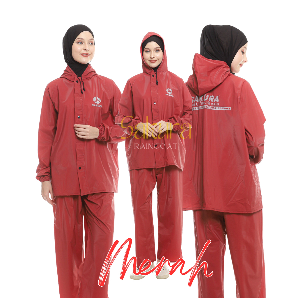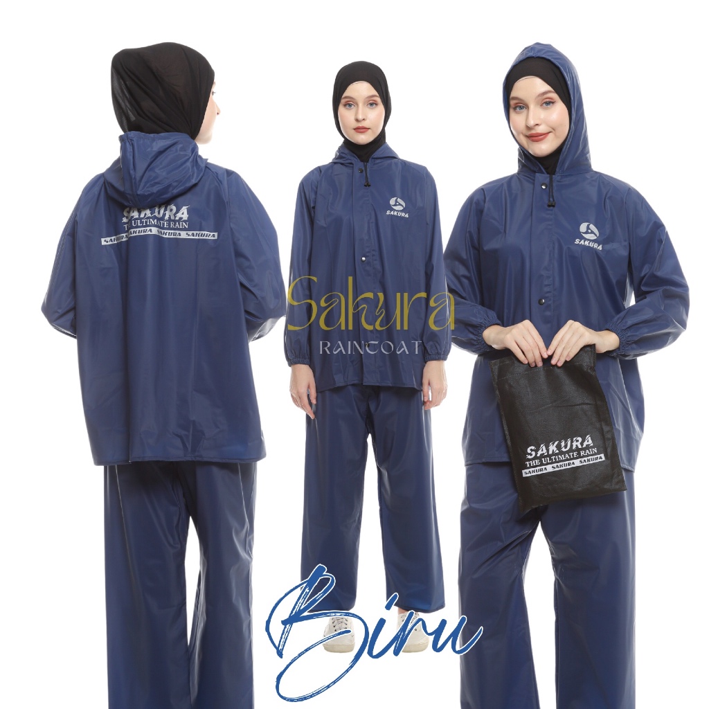 Jas Hujan Pria Wanita Dewasa Setelan Jaket Celana Tebal Sakura Berkualitas Terbaru Anti Rembes Original Termurah