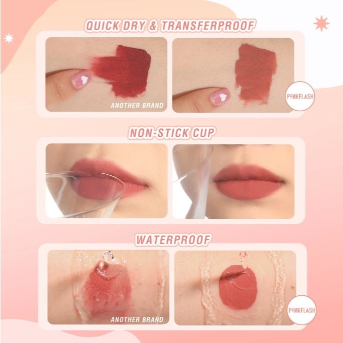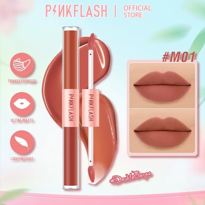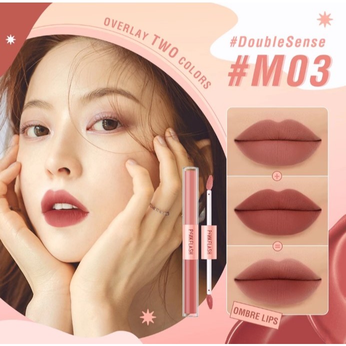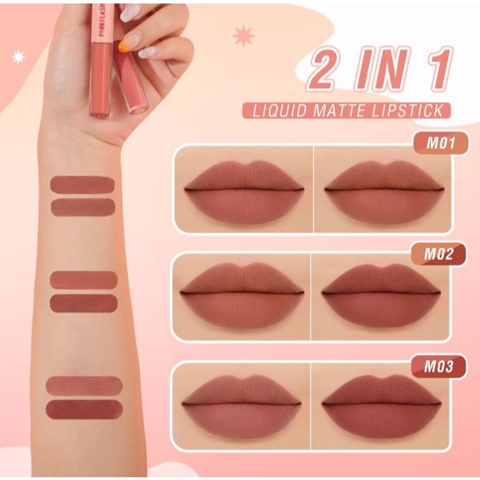 PINKFLASH 2 IN 1 Dual-ended Liquid Lipstik ombrelips Matte Velvet High Pigment Tahan lama
