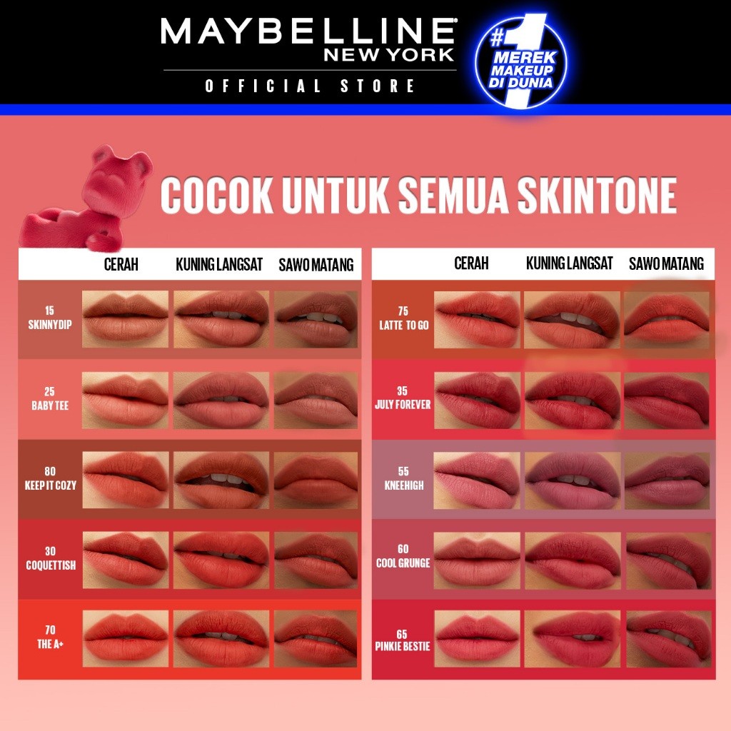 MAYBELLINE Superstay Teddy Tint 5 mL - Teddy Soft Matte Tahan 12 Jam Lipstick Lipcream Lipstik Perfect Lip Tint Lipstik