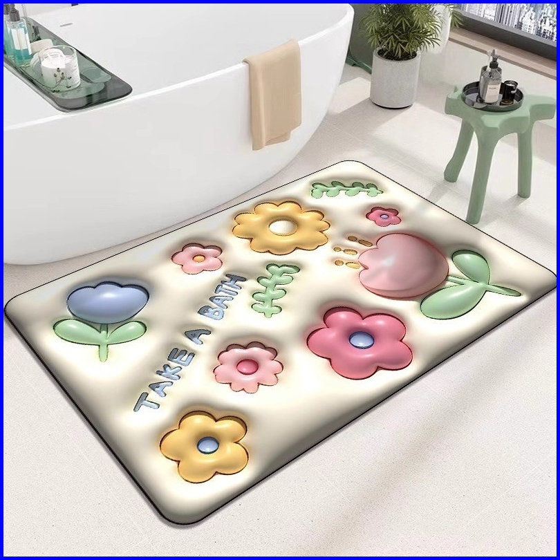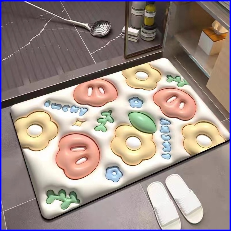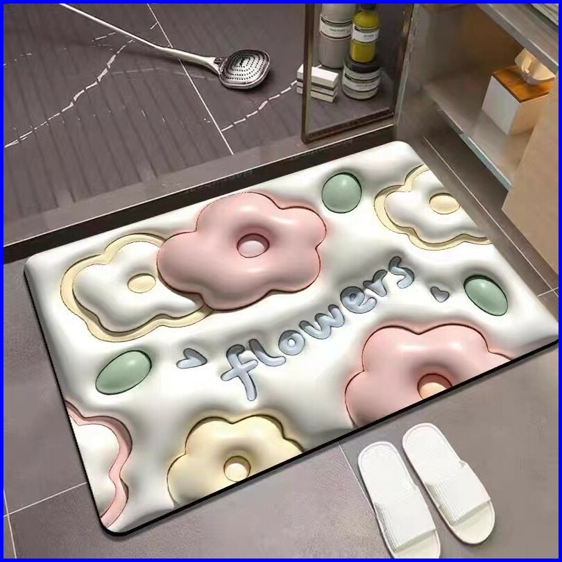 Karpet Kamar Mandi Anti-selip Alas Dapur 3d Karpet Kaki Kristal Flanel Mudah Diserap