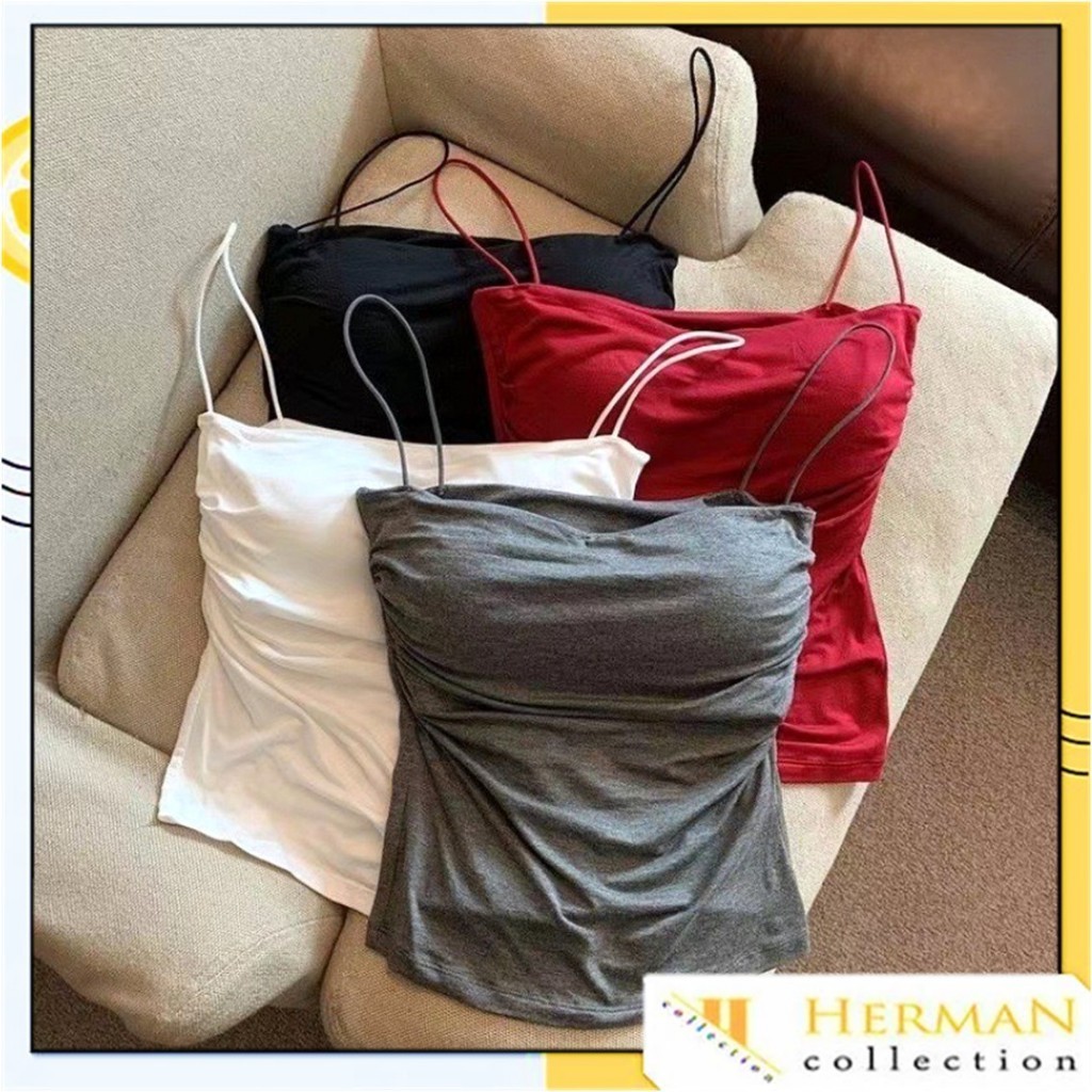 HC BR6978 Tanktop Bra Wanita Polos Kerut Samping Tank Top Basic With Cup Wanita Square spaghetti Crop Top Pakaian Dalam