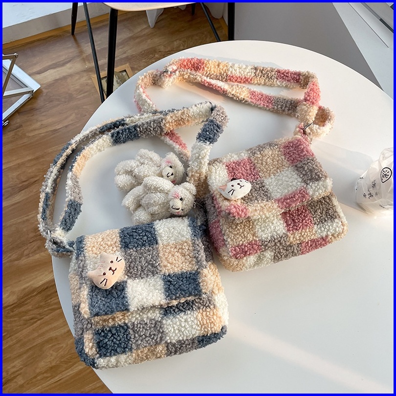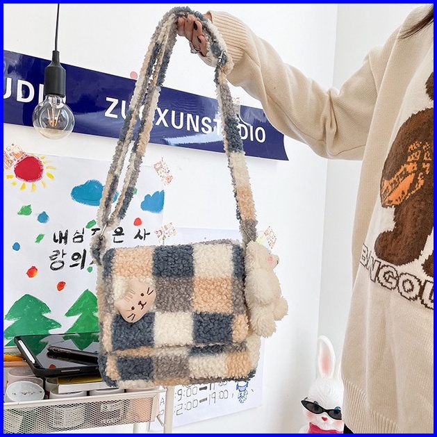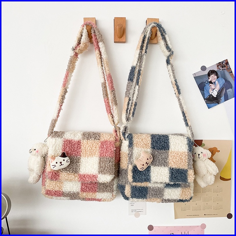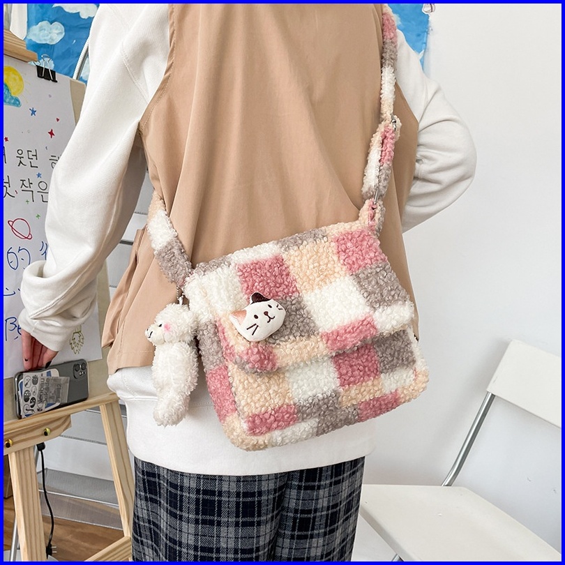 Mismi Kaitlyn Bag Tas Selempang Wanita Checker Plush Cute Sling Bag Resleting Perempuan Stylish - 20k