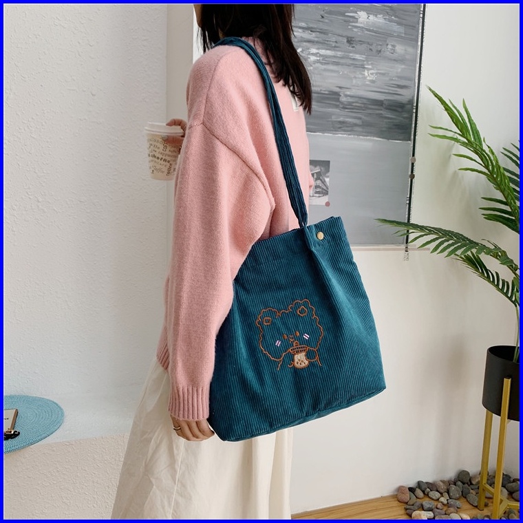 Mismi Melody Tote Bag Tas Jinjing Wanita Korduroi Cute Korean Shopping Bag Perempuan Stylish - 17m