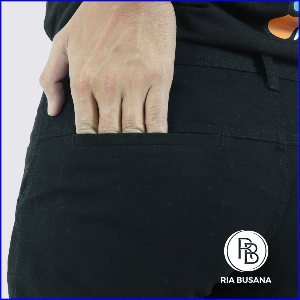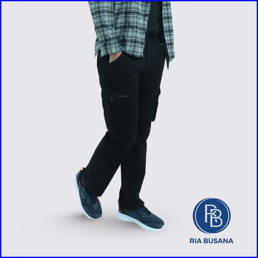 Ria Busana - M Zone - Celana Panjang Cargo Kantong Dewasa Pria Tebal Hitam Art. Gefm00916gtn