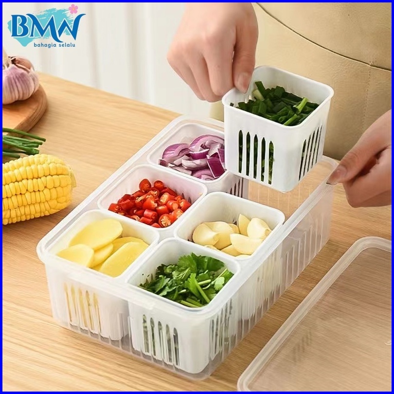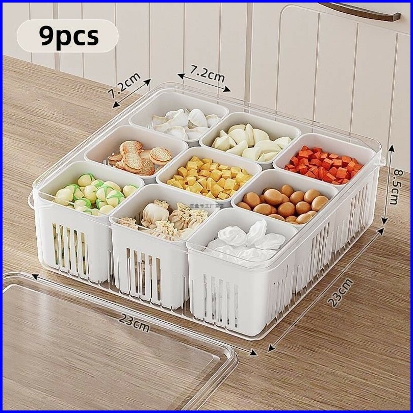 Kotak Penyimpanan Kulkas Untuk Menjaga Kesegaran Sayur Dan Buah Dengan Rak Penyaring 9 Sekat 6 Sekat