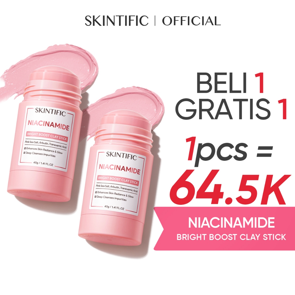 SKINTIFIC - Mencerahkan Kulit Niacinamide Bright Boost Clay Stick 40g | Brightening Glowing Masker Wajah Komedo Skincare