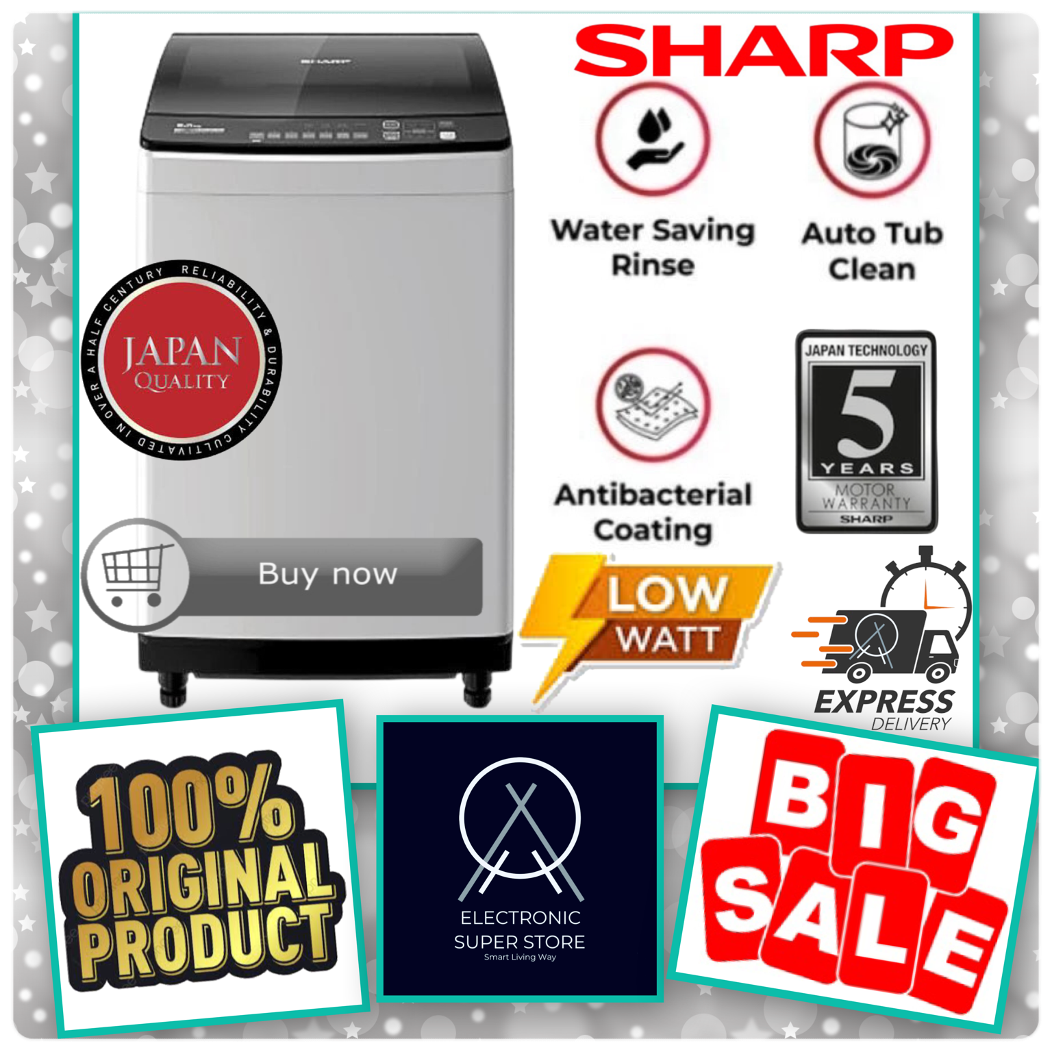 MESIN CUCI SHARP ES-M9000T ESM9000T ES M9000T 1 TABUNG 9KG SUPER ANTI BACTERIAL COATING TOP LOADING SHARP 9 KG ZERO PRES