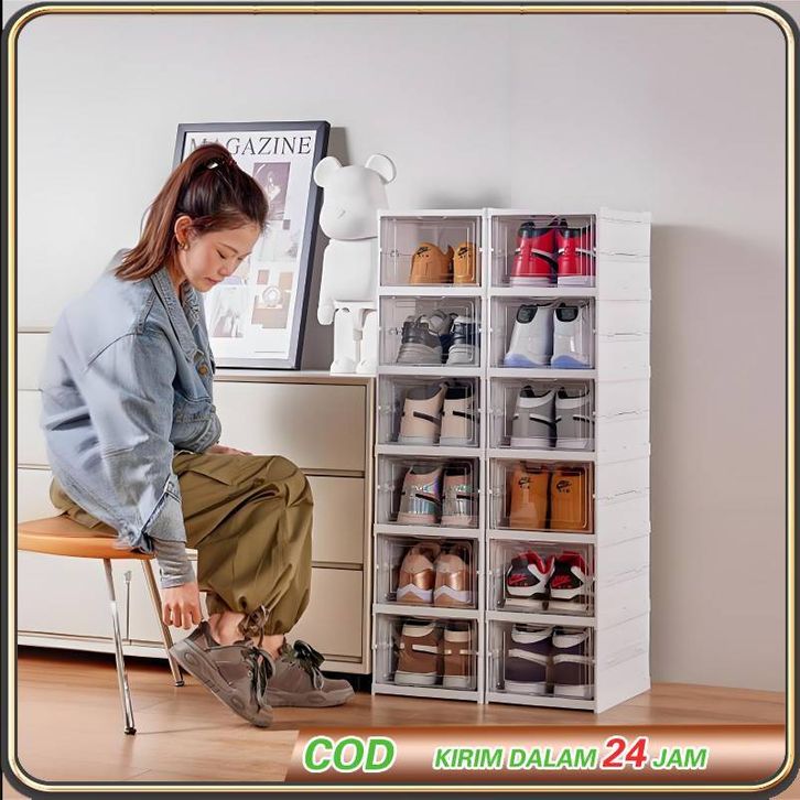 Rak Sepatu Lipat Multifungsi 1/3/6 Tingkat Anti Debu Tahan Lama | Foldable Shoe Rack Mudah Dipasang Organizer Hemat