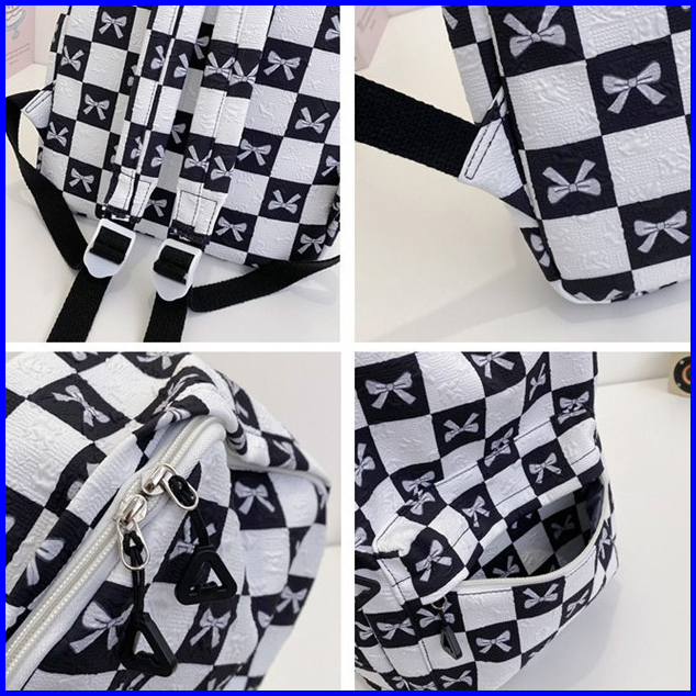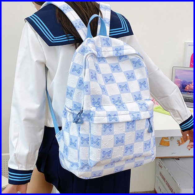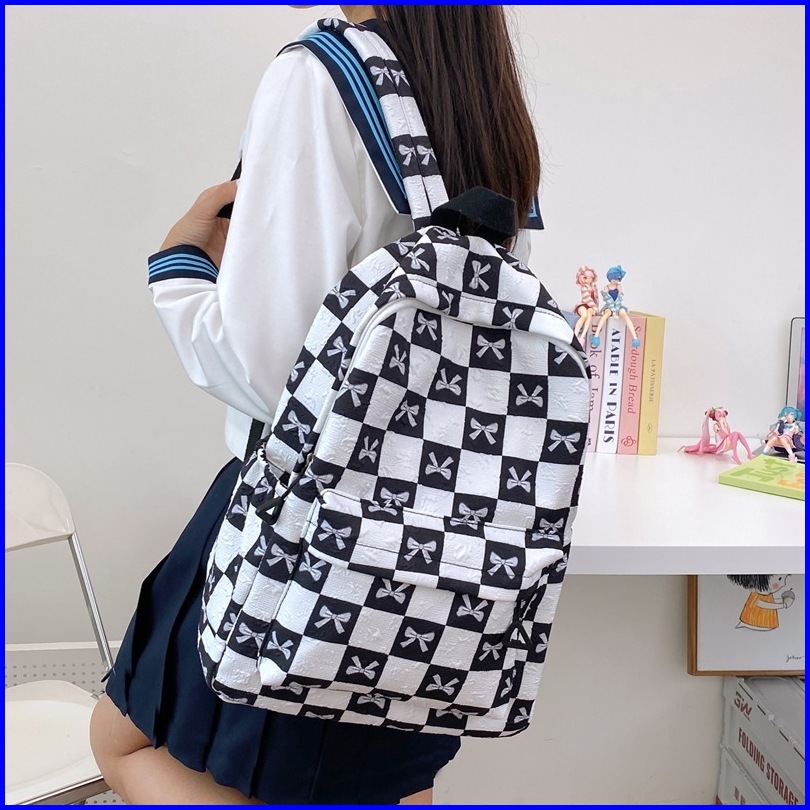 Mismi Linea Bag Tas Ransel Wanita Korean Ribbon Checker School Backpack Perempuan Stylish - 12l