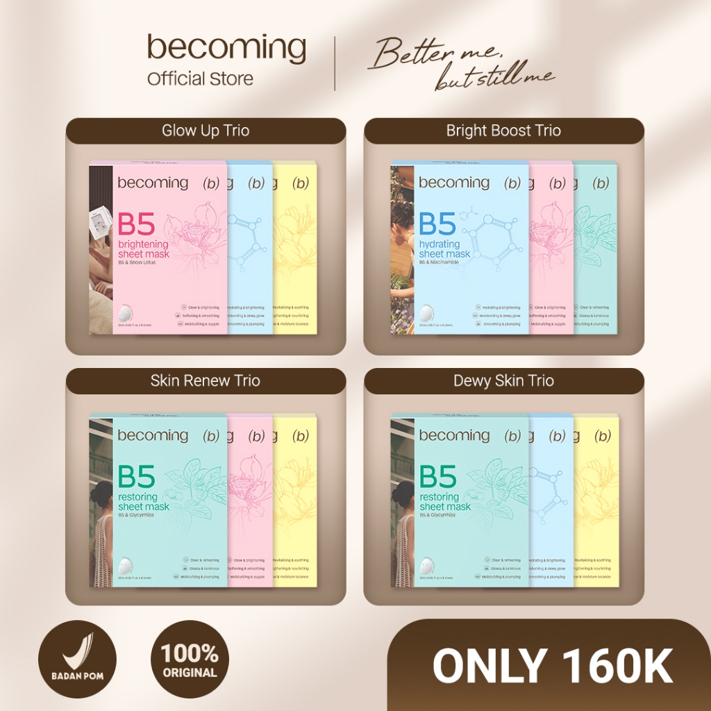 [3 BOX LEBIH MURAH] becoming B5 Sheet Mask 25ml | Bundle Isi 3 Box | Masker Wajah | Sheet Mask | Face Mask | Melembapkan