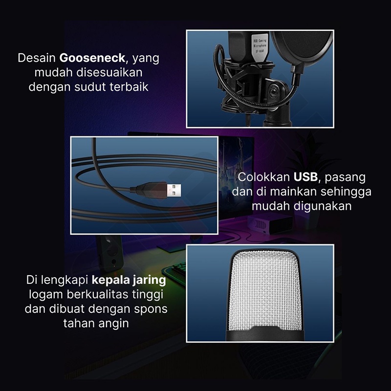 [Mall] SUIRGE Colorful Lights USB Microphone Wired Mikrofon Kabel Mic PC Gaming
