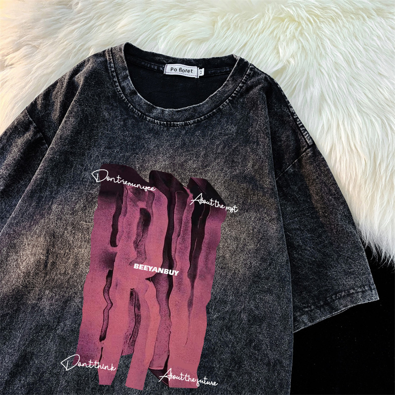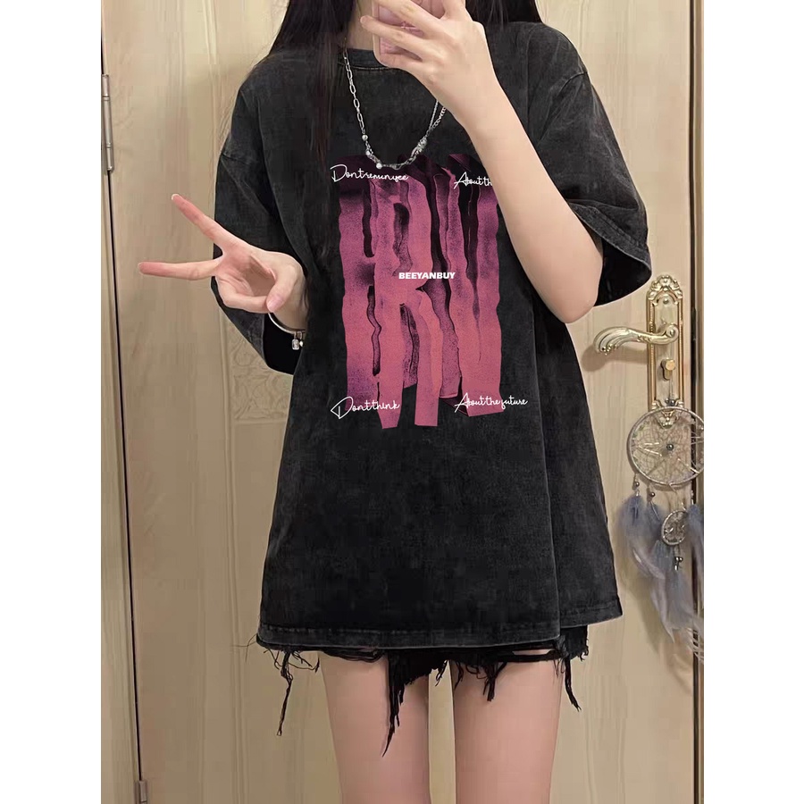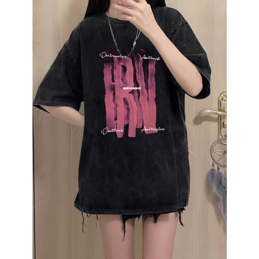 PO FLORET WASHED T SHIRT OVERSIZE LENGAN PENDEK KAOS STREET RETRO KATUN MURNI WANITA T0P HITAM