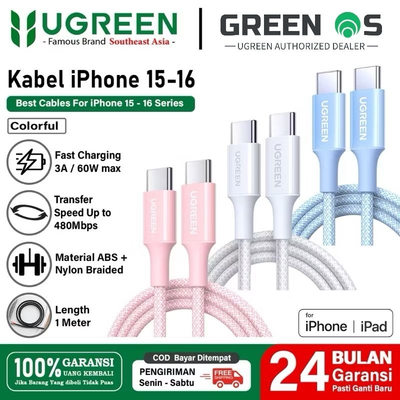 UGREEN Kabel Type C to Type C Braided Cable Fast Charging for iPhone 15 16 Series Samsung iPad Pixel